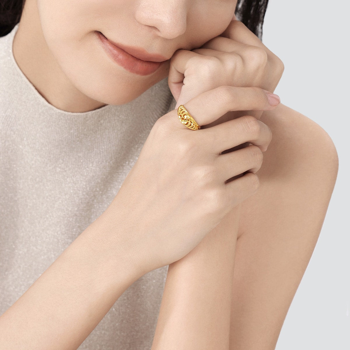This 999.9 Gold Ring by Chow Sang Sang offers a simple yet elegant design that can be worn daily or for special occasions. The high-purity gold construction ensures this ring exudes luxury with every wear.