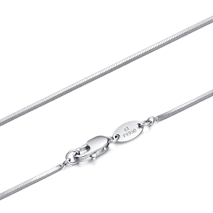 This 950 Platinum Necklace by Chow Sang Sang features a sleek snake chain design, offering versatile simplicity that works perfectly when layered or worn solo. Its refined and modern style makes it an ideal choice for any occasion.