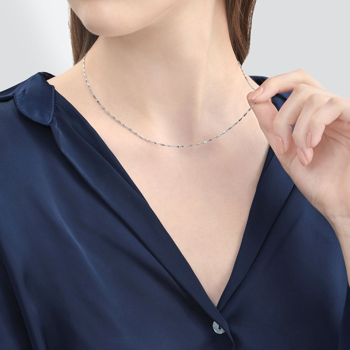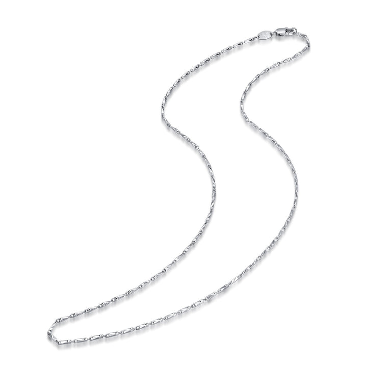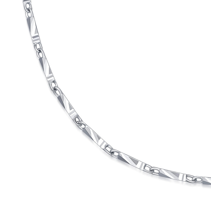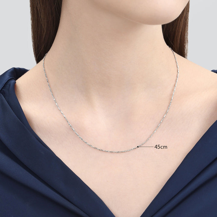 This 950 Platinum Necklace by Chow Sang Sang is refined with 3D geometry cutting, creating a radiant glow when stacked or worn solo. Its modern design and luminous finish make it a versatile piece for any occasion.