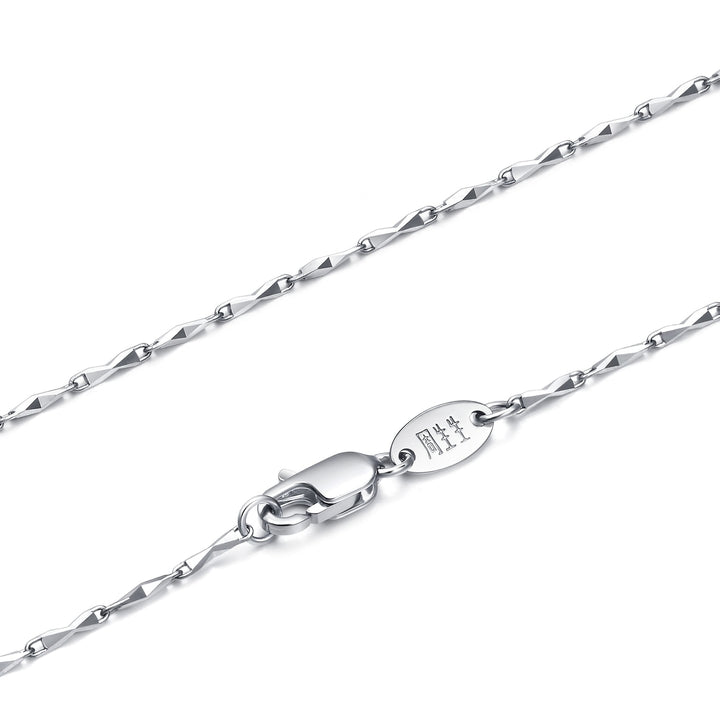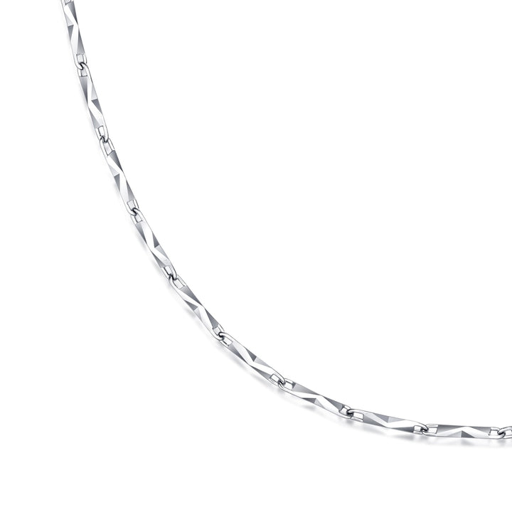 This 950 Platinum Necklace by Chow Sang Sang features a refined 3D geometry cutting that creates a radiant glow when worn solo or stacked with other pieces. Its sleek design adds a touch of modern elegance to any look.