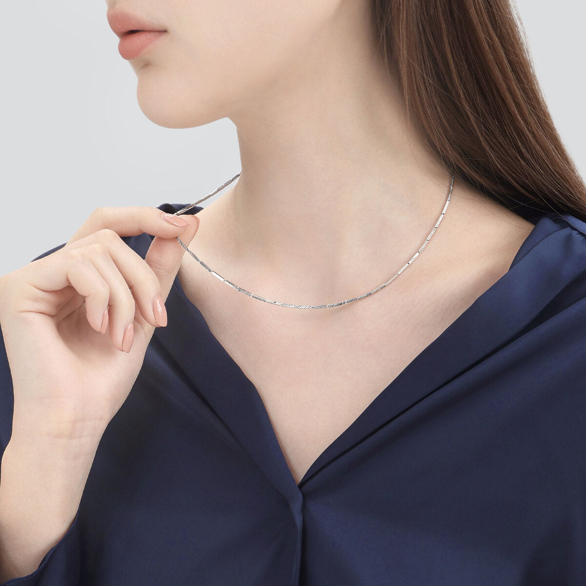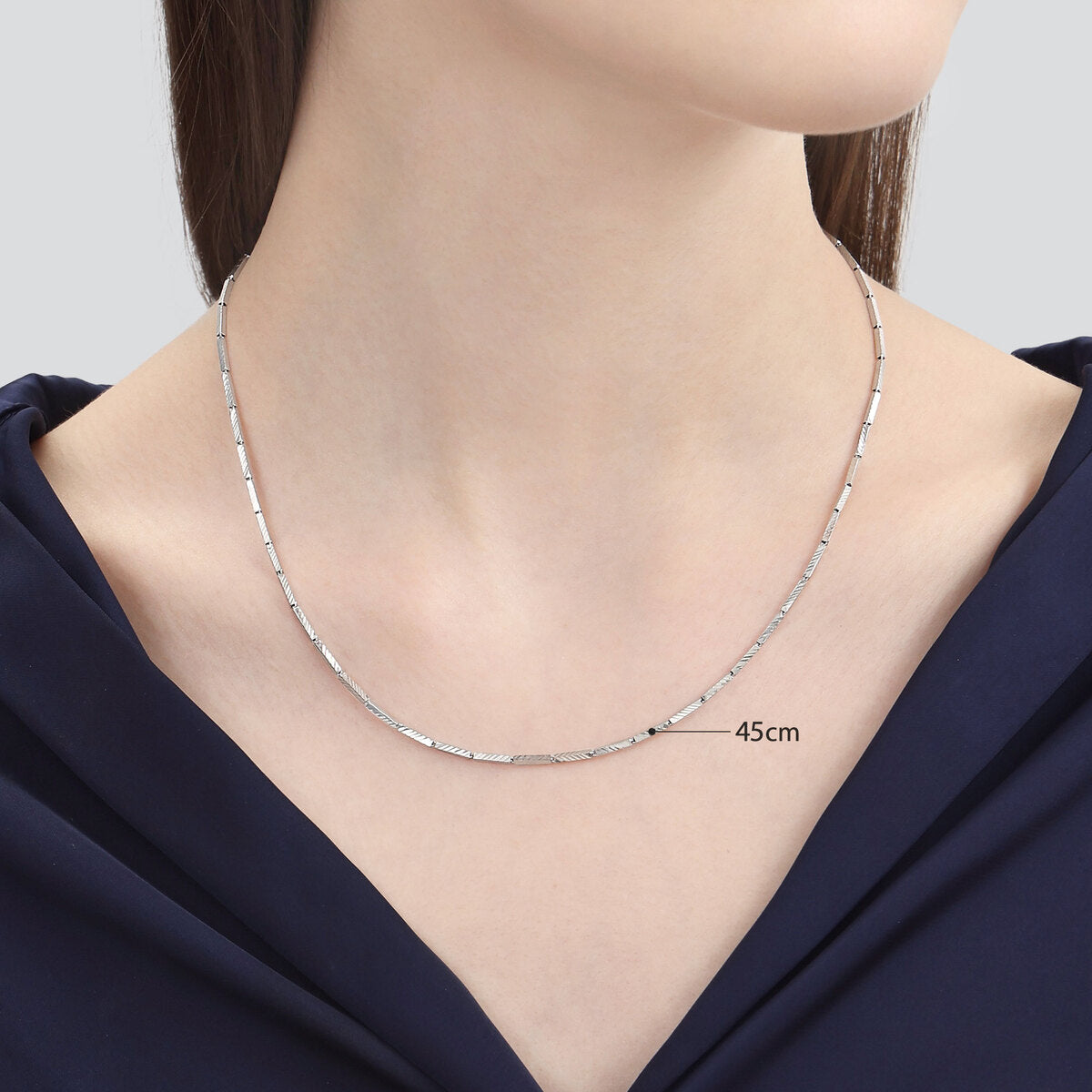 This 950 Platinum Necklace by Chow Sang Sang features a sleek and sophisticated design, refined by 3D geometry cutting that creates a radiant glow. The 45cm length makes it ideal for layering or wearing solo, offering versatile styling options.