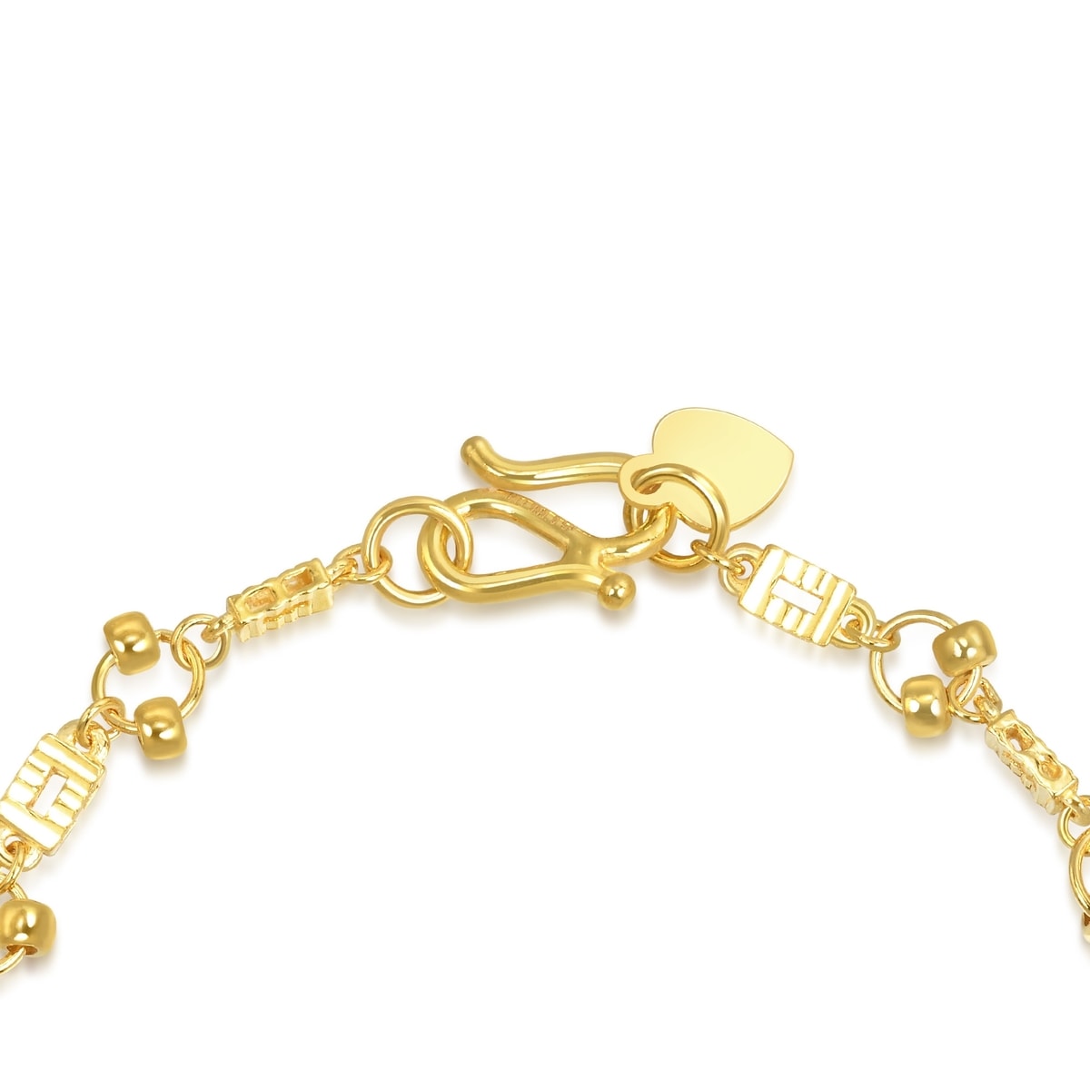 This 999.9 Gold Bracelet by Chow Sang Sang is an understated and luxurious piece, ideal for adding a touch of elegance to your style. The versatile 17cm length makes it perfect for wearing solo or layered with other pieces.