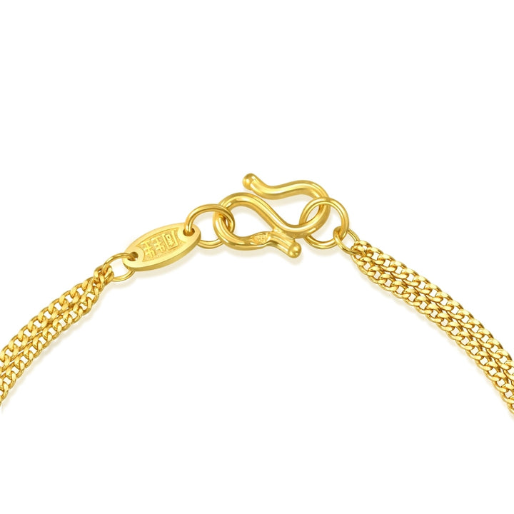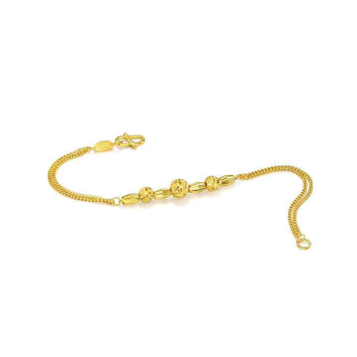 This 999.9 Gold Bracelet by Chow Sang Sang features intricate gold beads that have been refined with engraving and sandblasting techniques, creating a 3D textured finish. Whether stacked or worn solo, this bracelet makes a bold statement, adding a touch of elegance to any look.