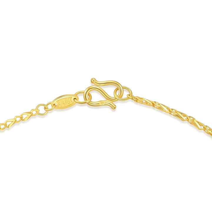 This 999.9 Gold Necklace by Chow Sang Sang is crafted with heart-shaped patterns of varying sizes, symbolizing a deep and inseparable love that lasts forever. Its elegant design and meaningful symbolism make it a perfect statement piece for those who value timeless love.