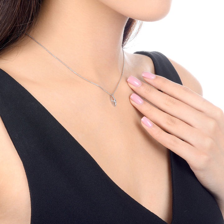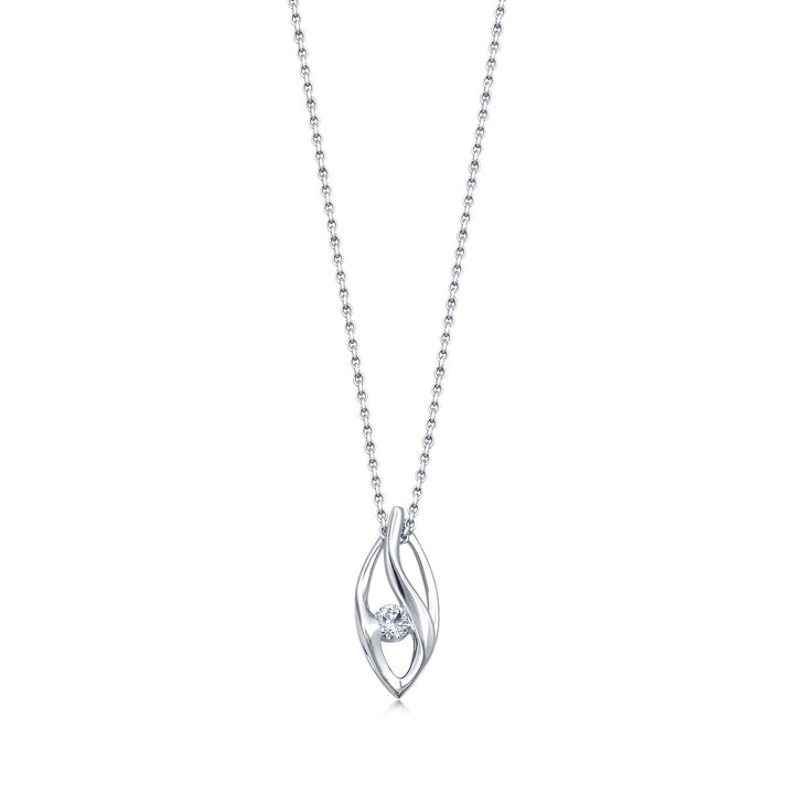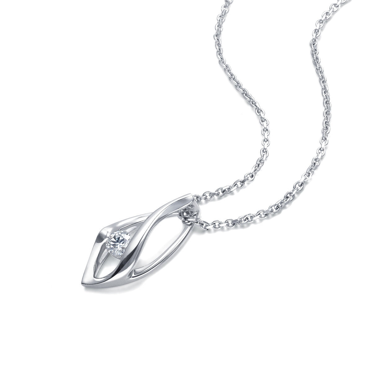 This 'Sculpt' 18K White Gold Diamond Pendant by Chow Sang Sang features a classic leaf design with a sparkling diamond set in the center. The striking simplicity of this piece makes it a timeless and versatile addition to any jewelry collection.