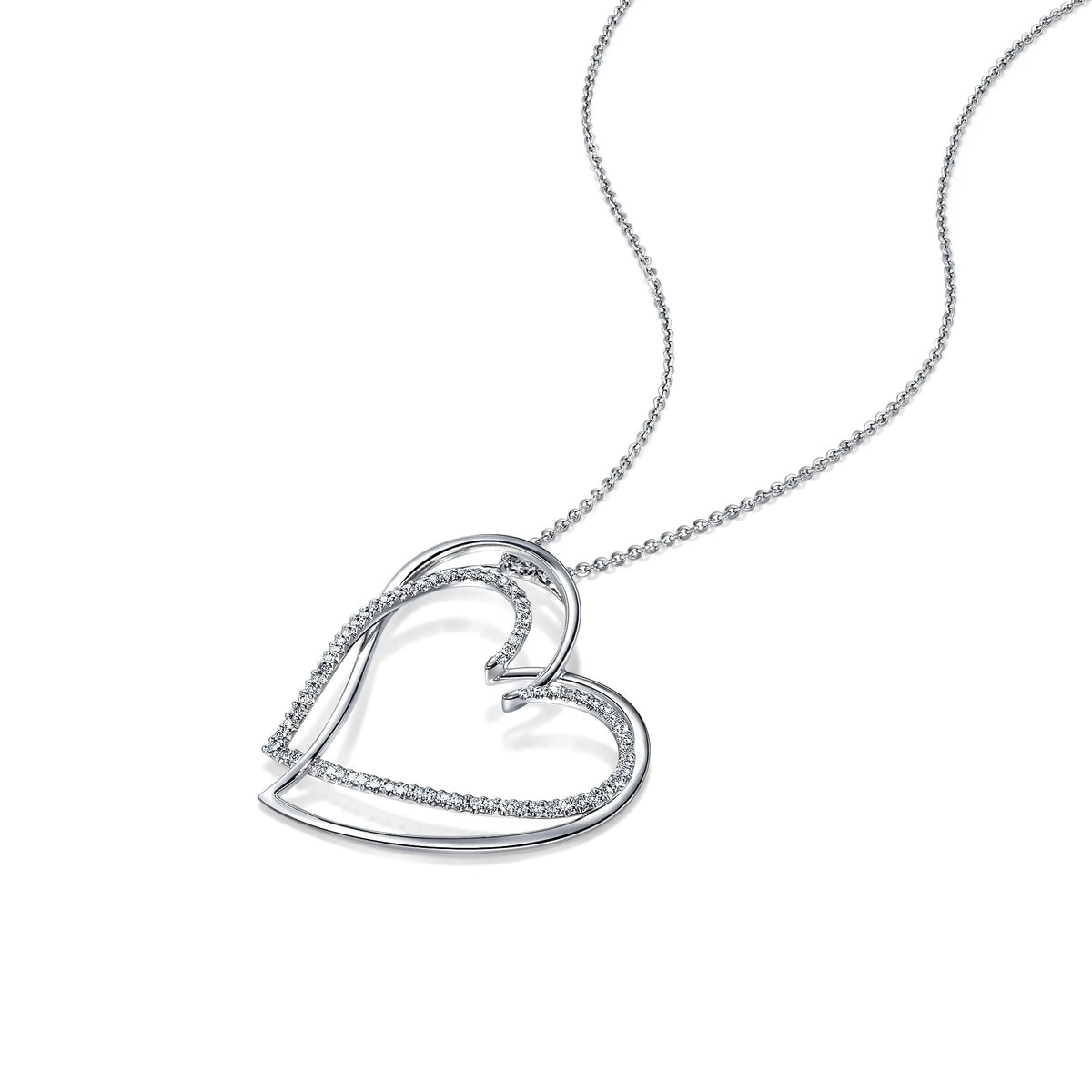 This 900 Platinum Diamond Pendant by Chow Sang Sang offers a delicate design with overlapping heart frames adorned with diamonds, symbolizing love and grace. The timeless beauty of this pendant makes it a perfect gift or statement piece for any occasion.