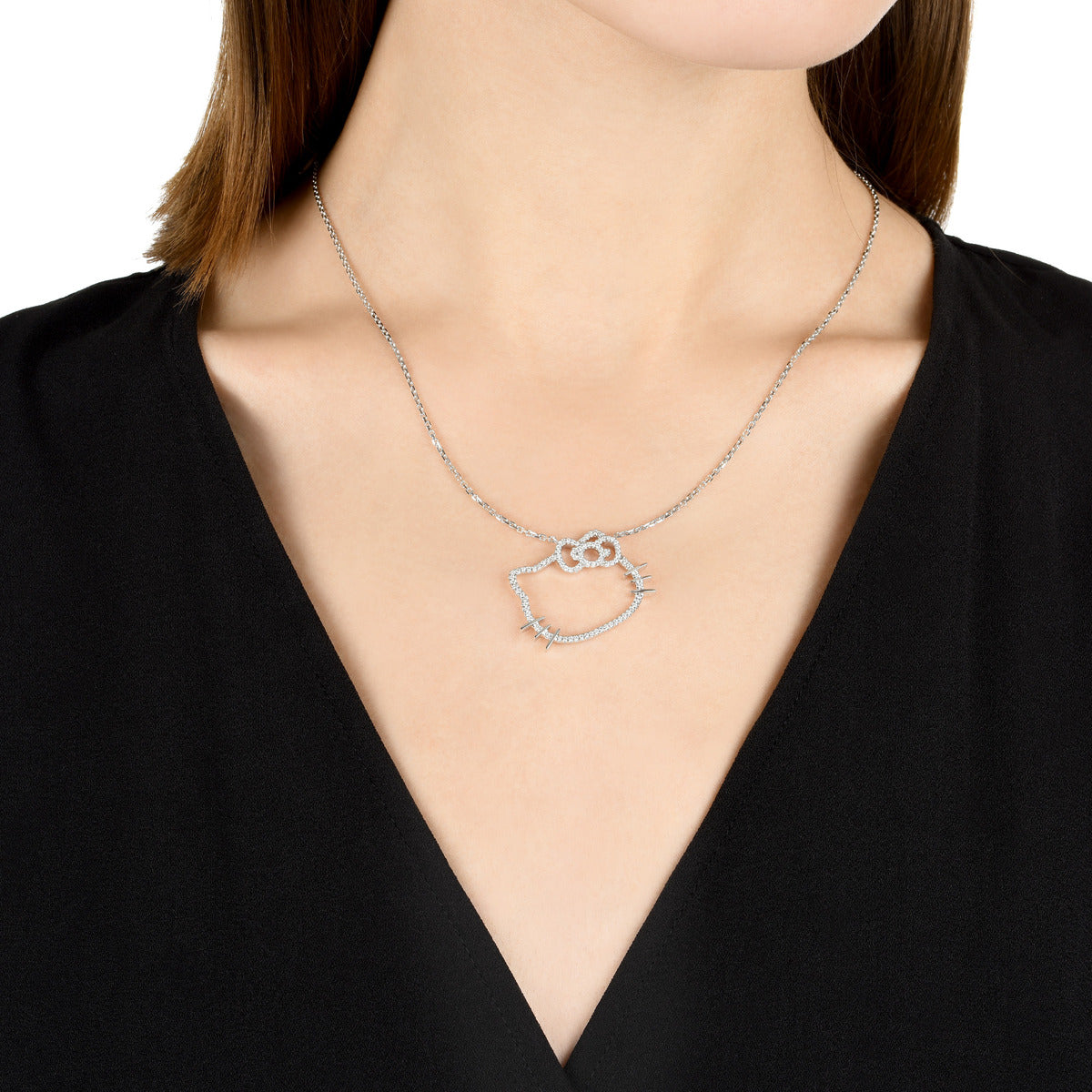 Hello Kitty' 18K White Gold Diamond Necklace