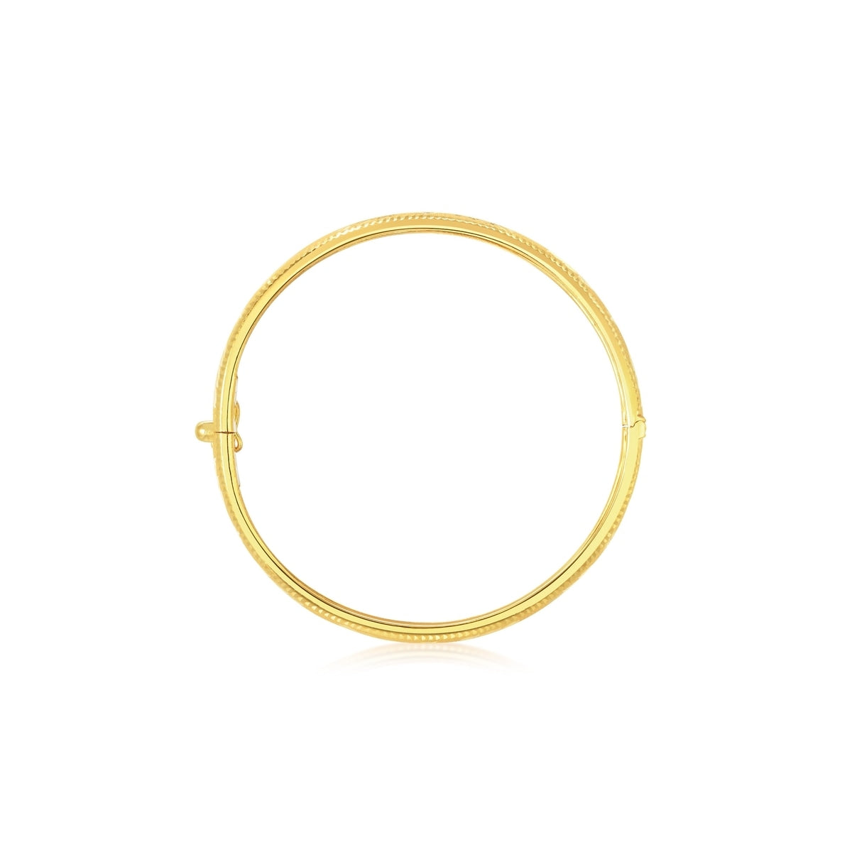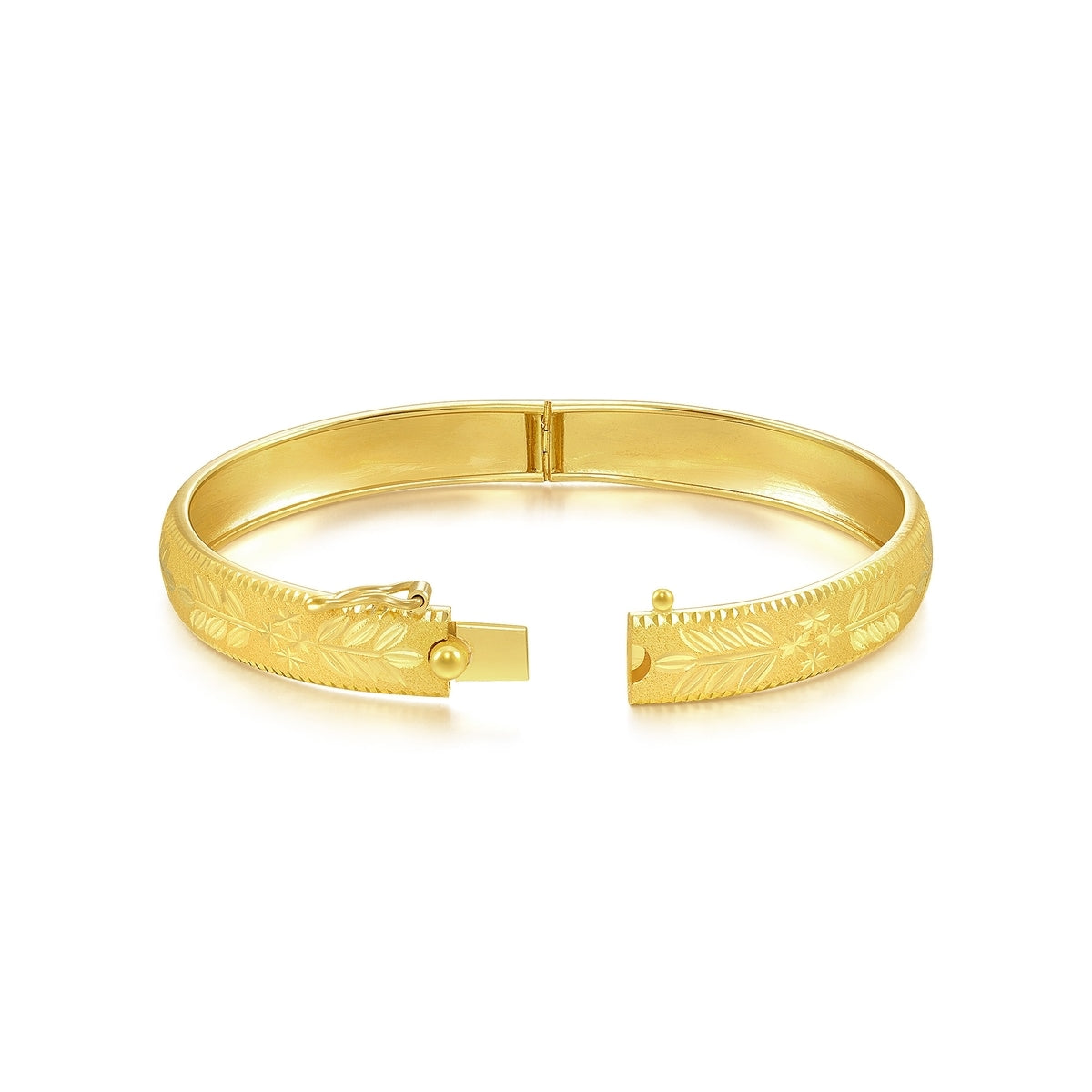 This 999.9 Gold Bangle by Chow Sang Sang features a sleek and polished design, perfect for adding a luxurious touch to any look. The substantial weight and smooth finish make this bangle a versatile piece that can be worn on its own or stacked with other bracelets.