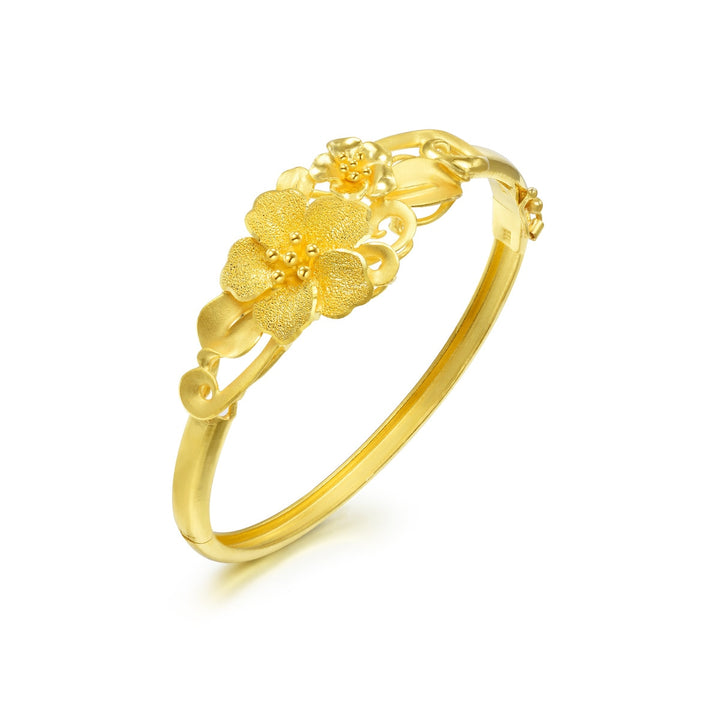 This 999.9 Gold Bangle by Chow Sang Sang features a sleek and polished design with a heavier weight, making it a bold statement piece. The bangle’s luxurious feel and smooth finish ensure it will be a staple in your collection for both casual and formal occasions.
