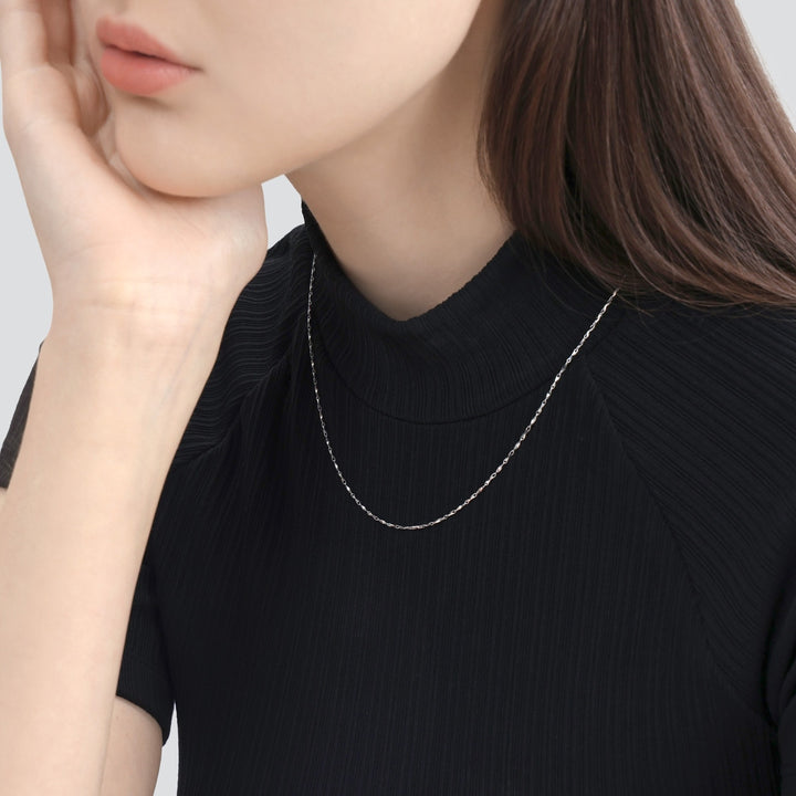 This 950 Platinum Diamond Cut Chain Necklace by Chow Sang Sang features refined 3D geometry cutting that creates a radiant glow. Its intricate design makes it a standout piece, perfect for stacking or wearing solo for an elegant, modern look.