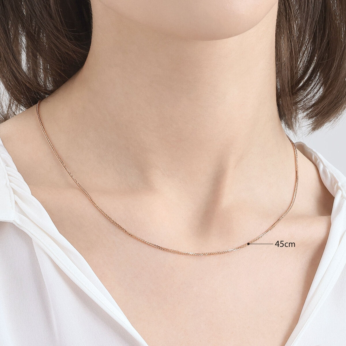 Handcrafted in 18K rose gold, weighing approximately 0.088 tael (~3.294g) and measuring 45cm in length.