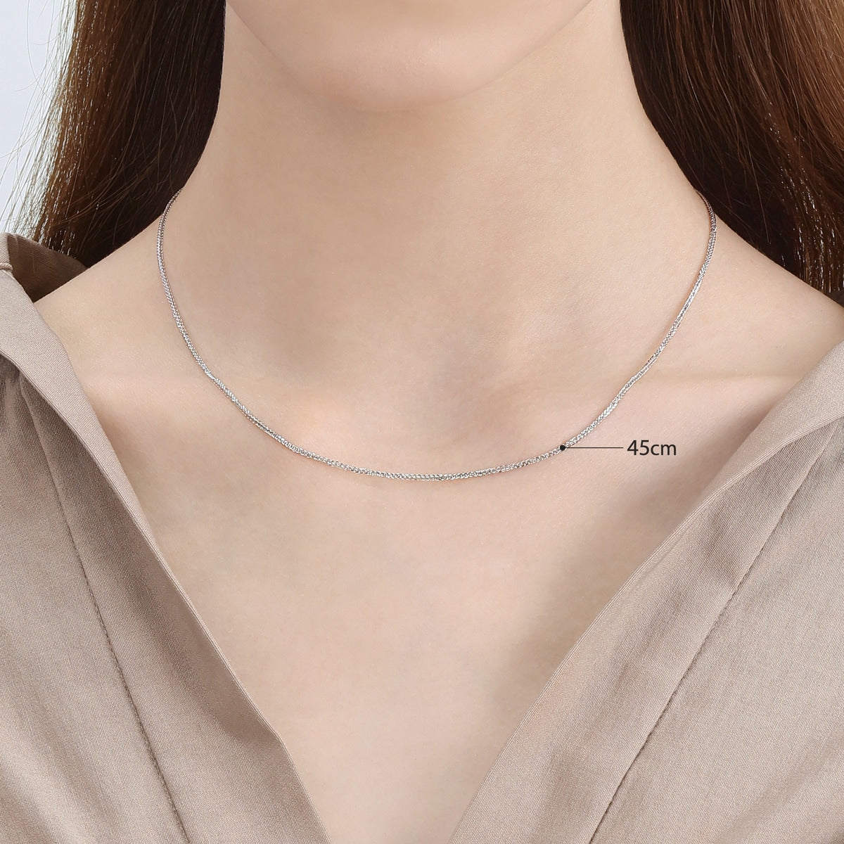 Handcrafted in 18K white gold, weighing approximately 0.091 tael (~3.406g) and measuring 45cm in length.
