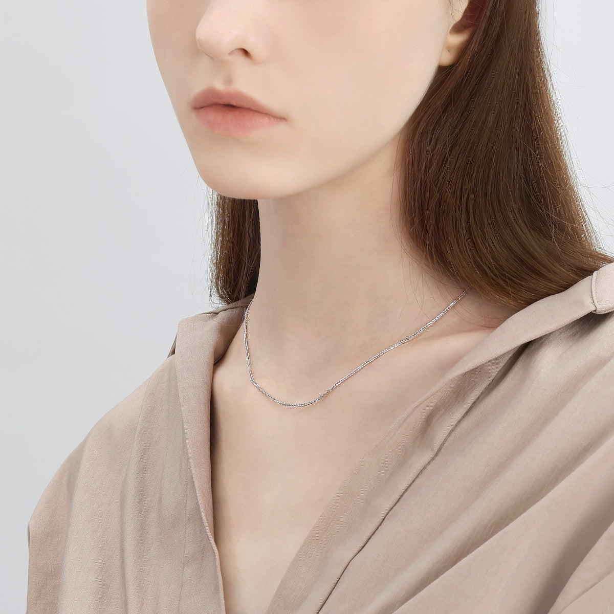This 18K White Gold Necklace by Chow Sang Sang is a versatile and sleek piece, adding a fashionable touch whether worn solo or paired with a pendant. Its minimalist design and 45cm length make it a timeless and adaptable accessory for any look.