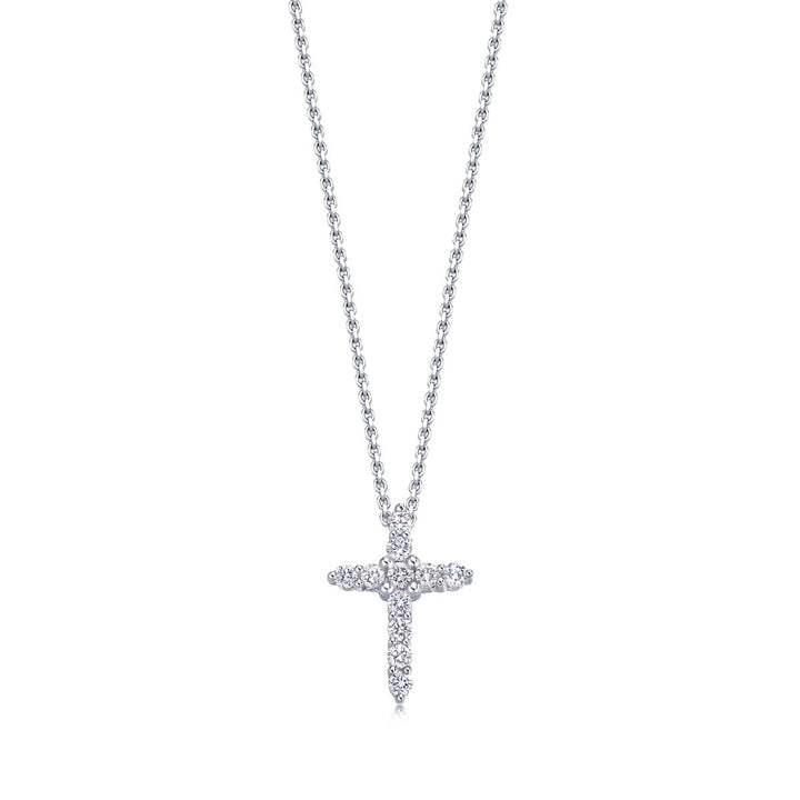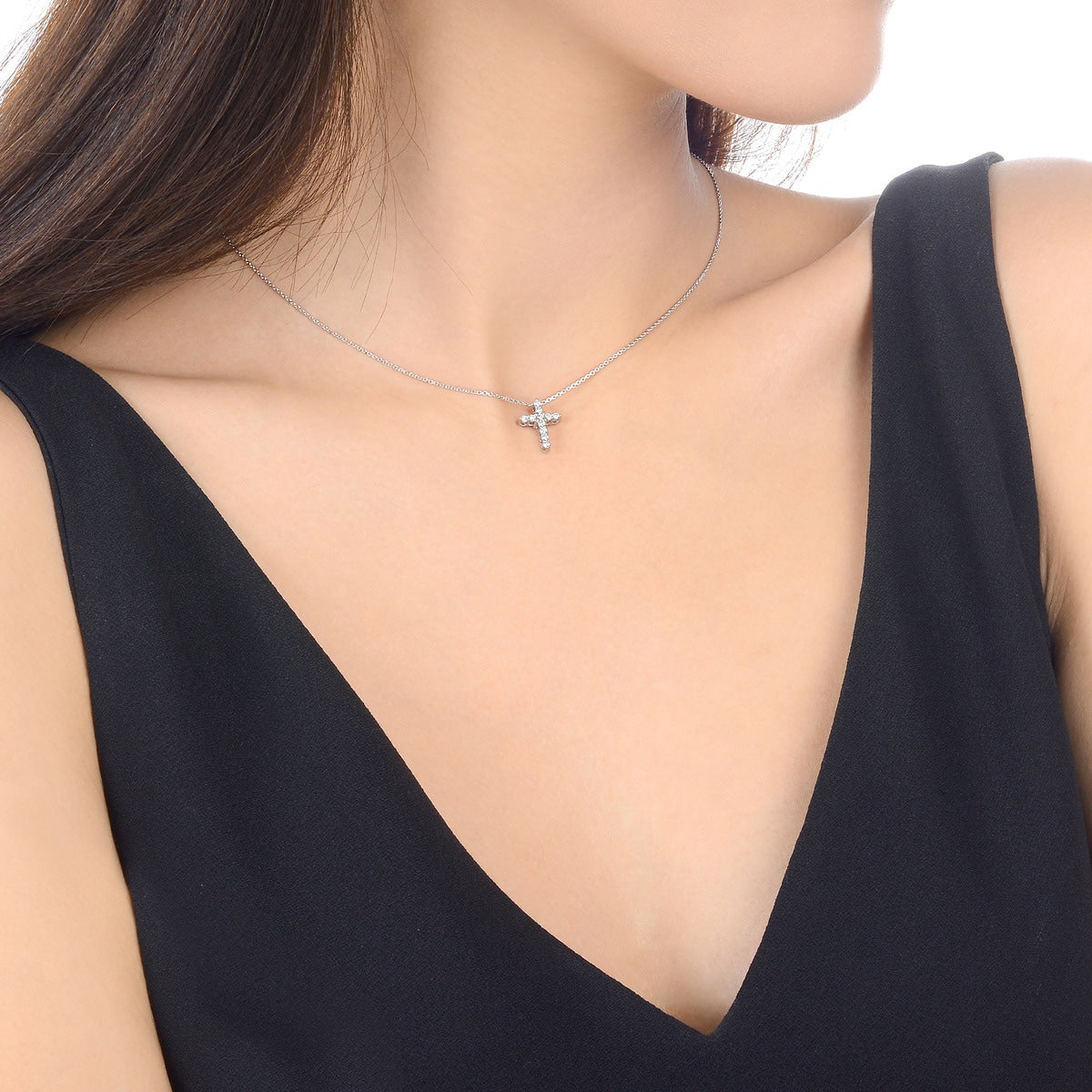 This 18K White Gold Diamond Cross Pendant by Chow Sang Sang is a prestigious piece, featuring a classic cross design embellished with small round diamonds. Its timeless elegance and spiritual significance make it a beautiful addition to any collection.