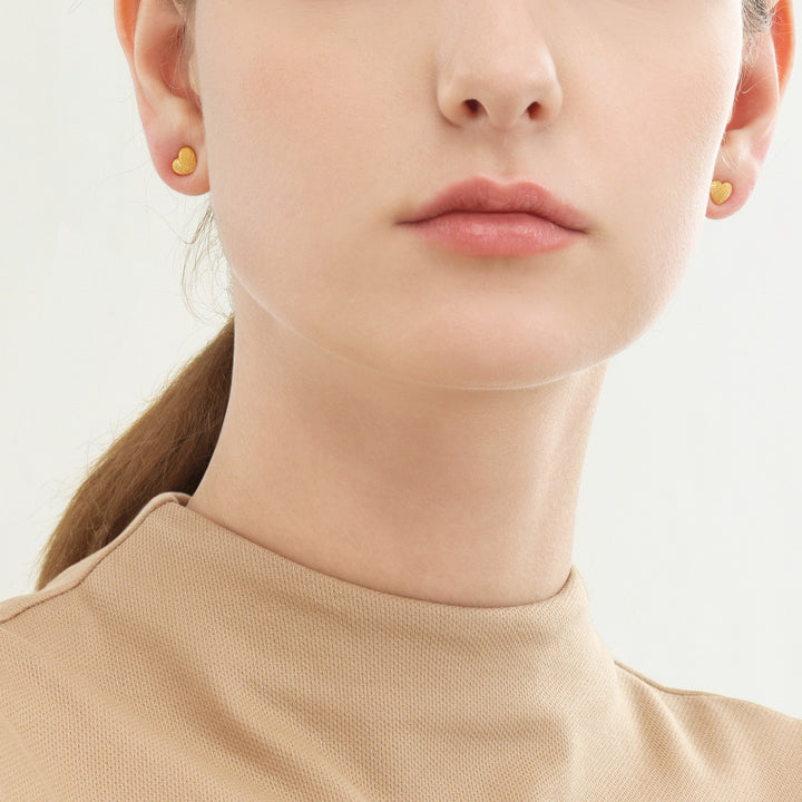 These 999.9 Gold Earrings by Chow Sang Sang are a simple pair of sparkly heart studs, perfect for daily wear. Their minimalist design adds a subtle touch of elegance to any outfit.