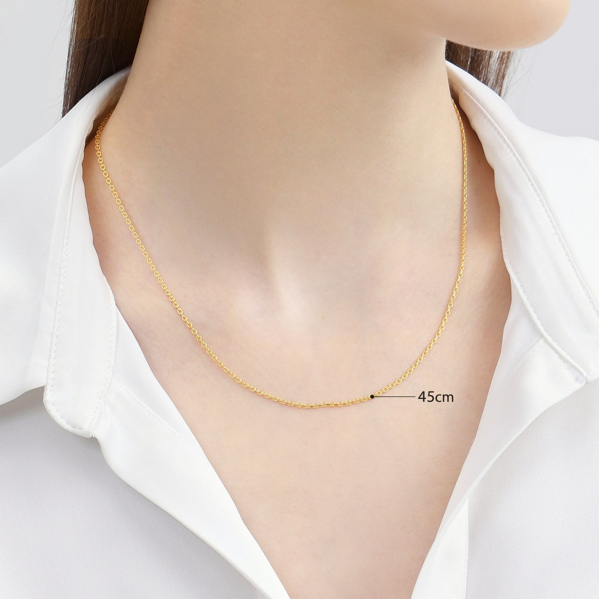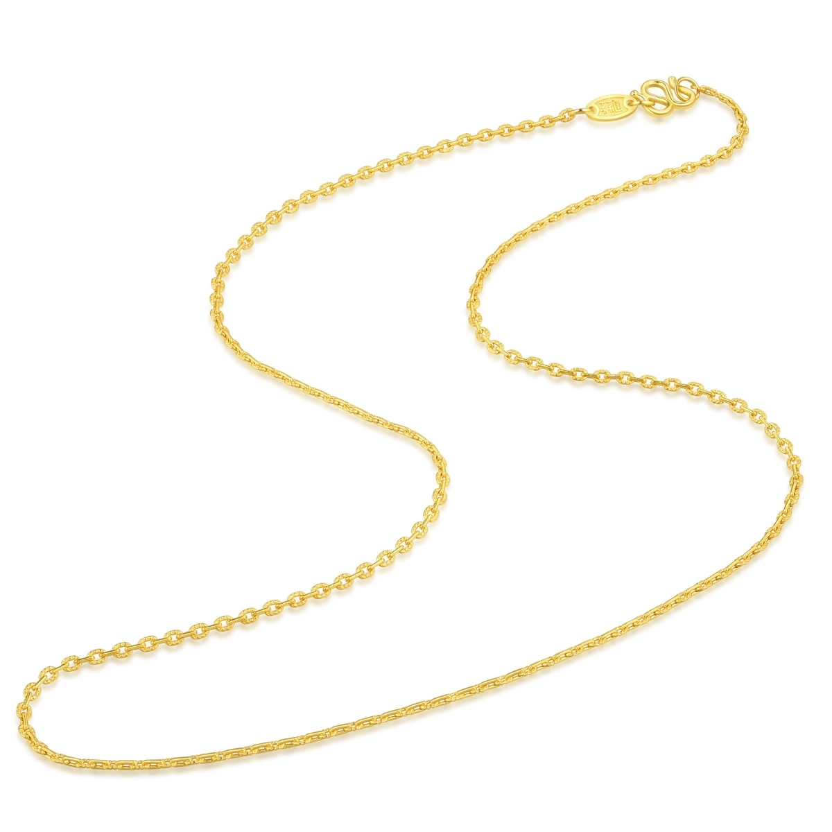This 999.9 Gold Necklace by Chow Sang Sang features a classic design, ideal for layering or wearing solo. Its 45cm length and polished finish make it a timeless and versatile piece for any wardrobe.
