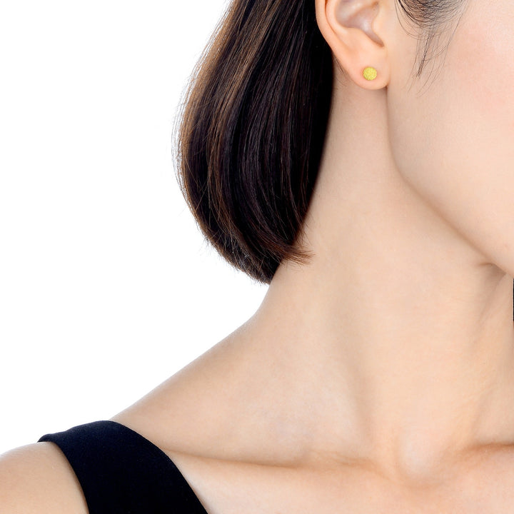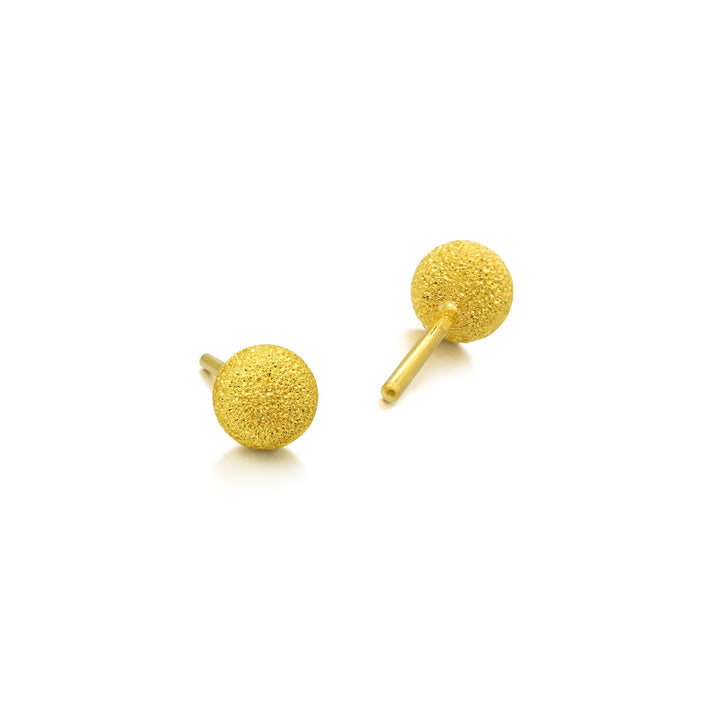 These 999.9 Gold Bead Earrings by Chow Sang Sang are enhanced with sand blasting, adding subtle detailing to the minimalist design. These earrings offer an elegant and understated style, perfect for any occasion.