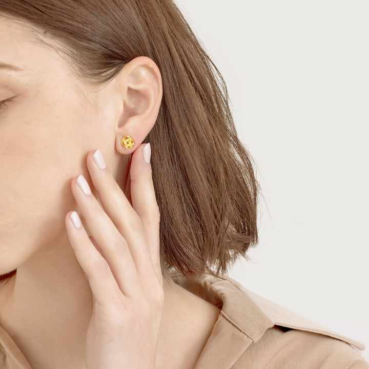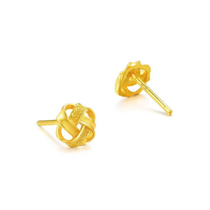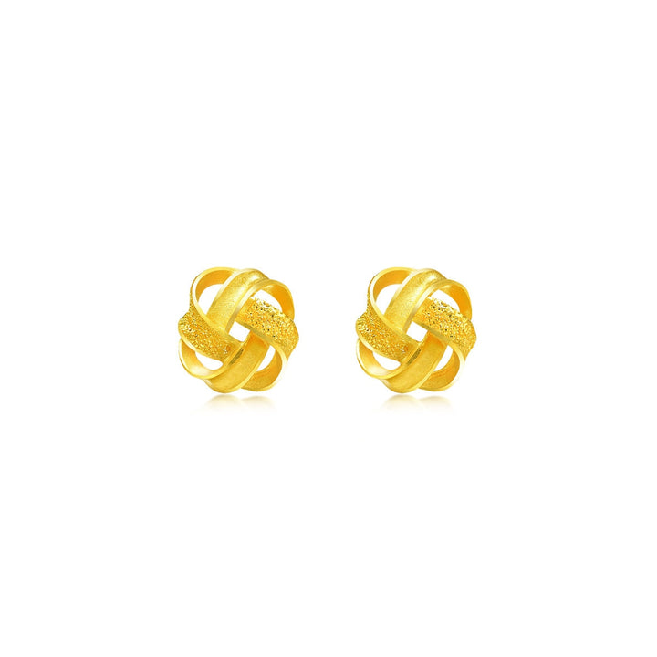 These 999.9 Gold Openwork Earrings by Chow Sang Sang feature a mix of polished and matte finishes, creating a playful yet elegant design. The openwork detailing adds depth and layering, making these earrings a joyful addition to your style.