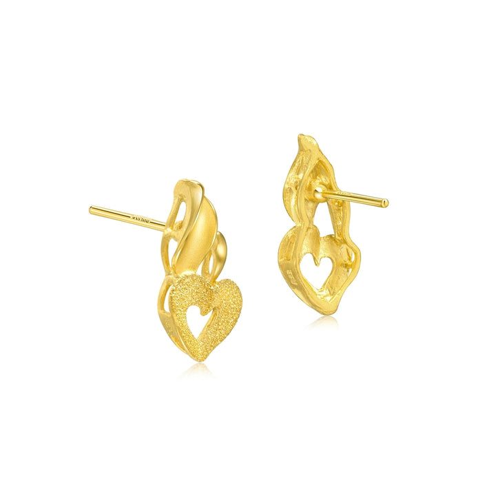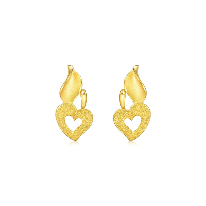 These 999.9 Gold Drop Earrings by Chow Sang Sang are presented with a matte finish, highlighting their delicate and intricate design. The heart-shaped accents add elegance and charm, making them a graceful accessory for any outfit.
