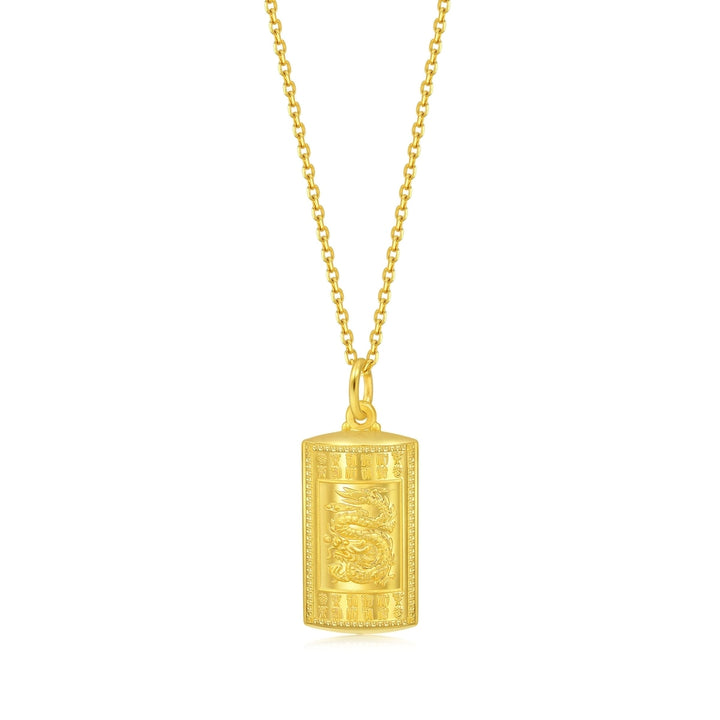 This 999.9 Gold Dragon Pendant by Chow Sang Sang features an intricate design, embodying the power and strength of the dragon. Its medium size and lightweight construction make it a versatile piece for adding symbolic meaning to any look.
