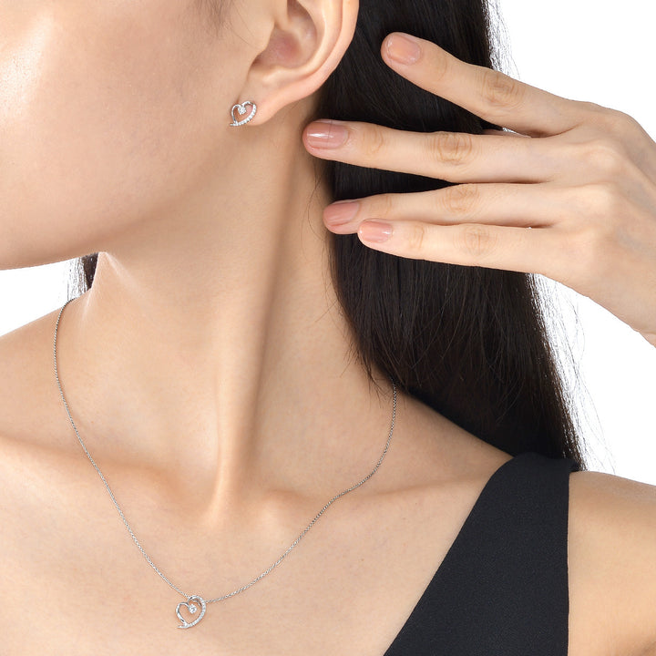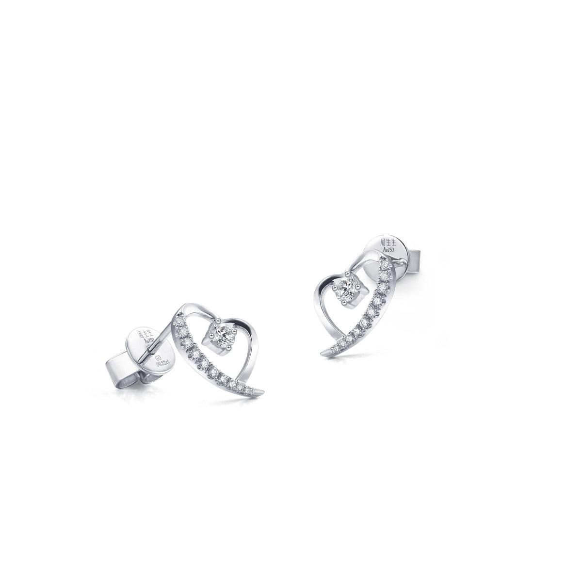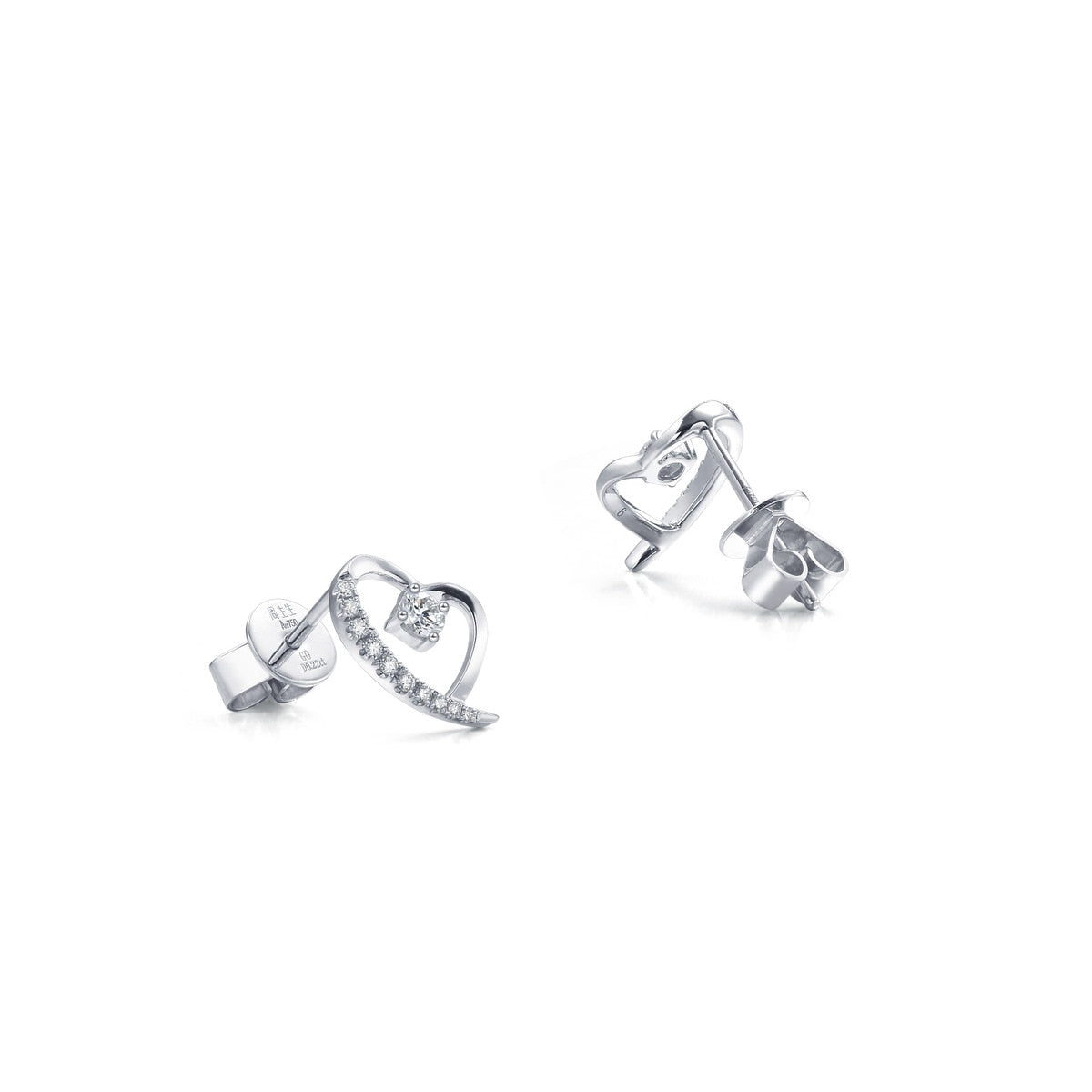 These 18K White Gold Diamond Earrings by Chow Sang Sang feature a unique, irregular heart design adorned with stunning diamonds. The slender outlines and sparkling stones make this piece a gorgeous symbol of love, perfect for special moments.