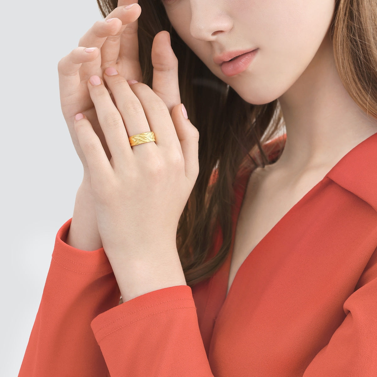 This 999.9 Gold Ring by Chow Sang Sang is crafted with a bold and elegant design, offering a substantial weight and timeless appeal. Its simple yet luxurious style makes it a perfect accessory for any occasion.