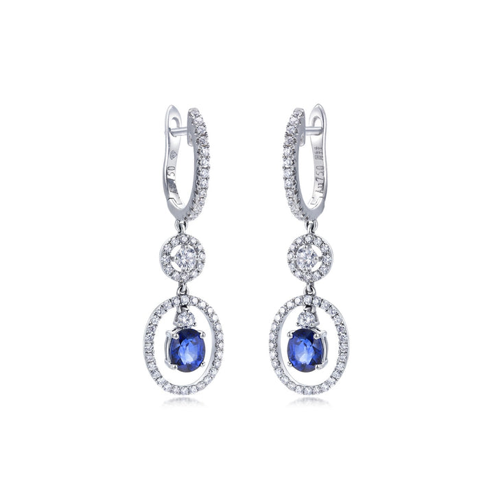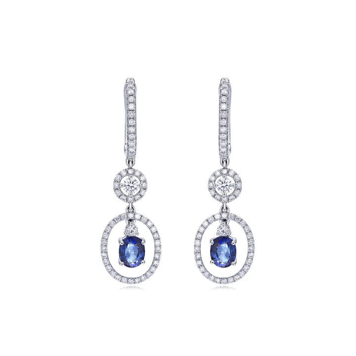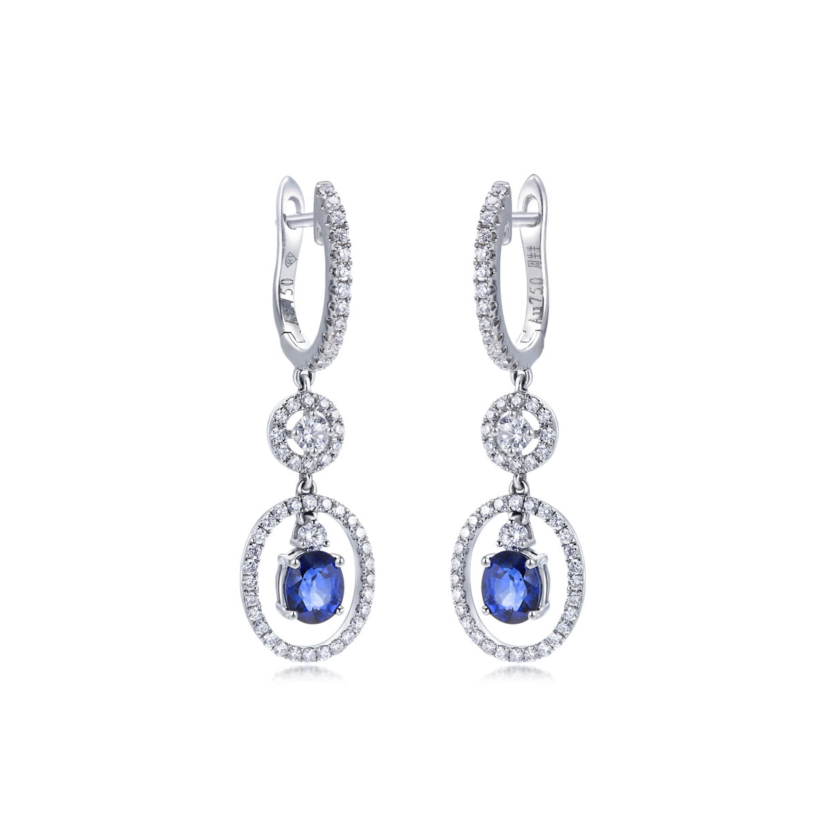These 18K White Gold Sapphire Earrings by Chow Sang Sang showcase 1.22ct of sparkling sapphires, set in a classic white gold design. The earrings add a touch of color and elegance, perfect for both everyday wear and special occasions.