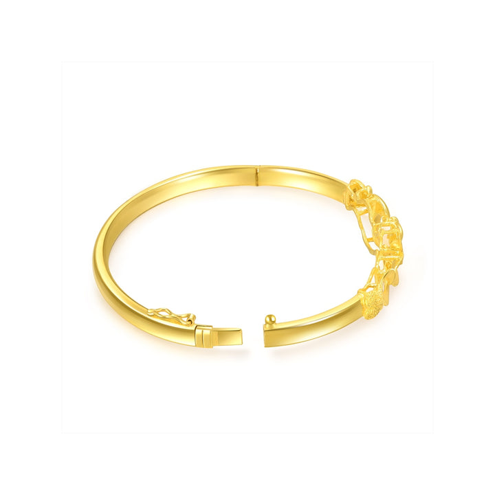 This 999.9 Gold Bangle by Chow Sang Sang offers a similar bold and elegant design with slightly less weight. Its minimalist yet luxurious design makes it a versatile piece for any occasion.