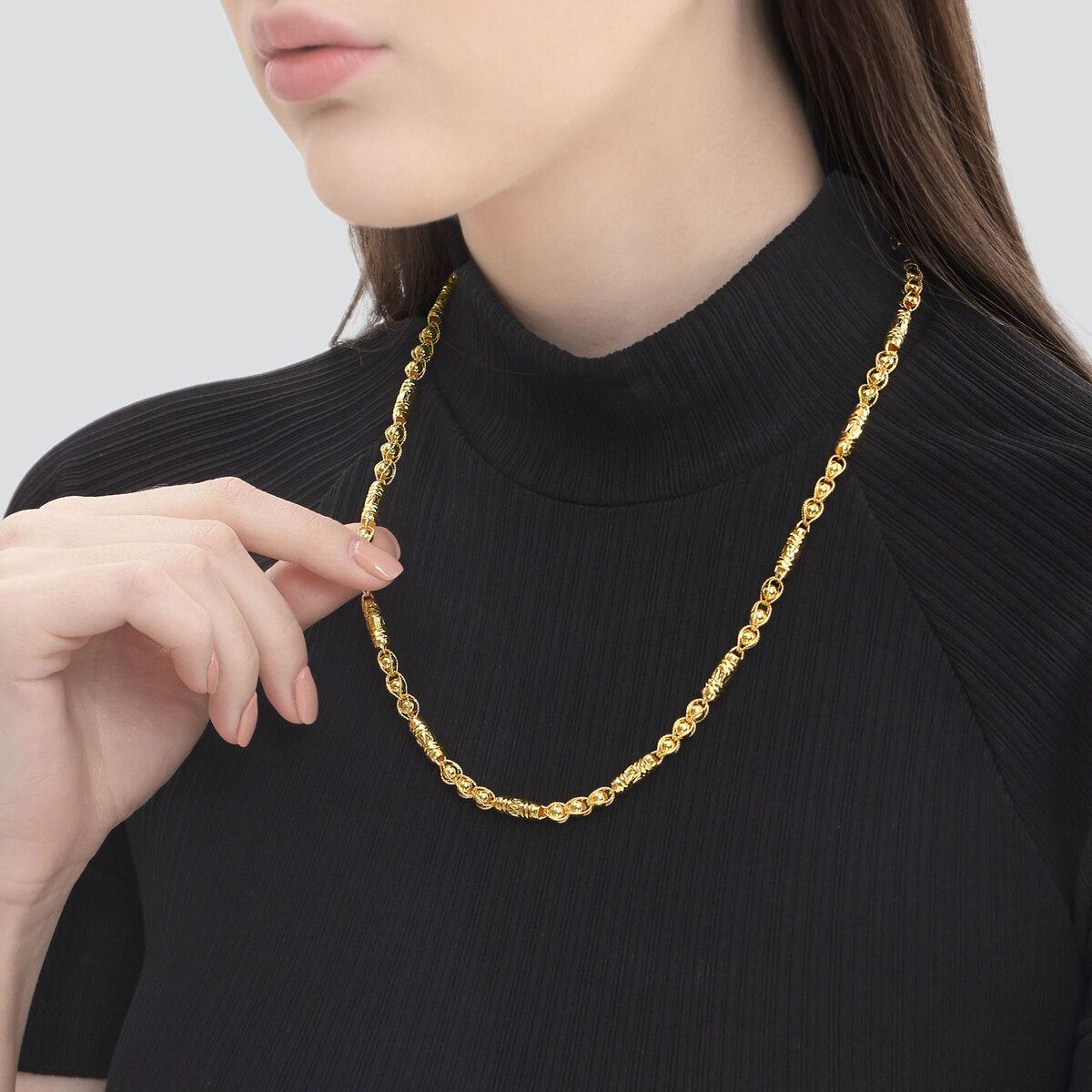 This 999.9 Gold Necklace by Chow Sang Sang features a substantial weight and minimalist design, making it a bold and elegant addition to your jewelry collection. Its 55cm length adds versatility and style to any outfit.