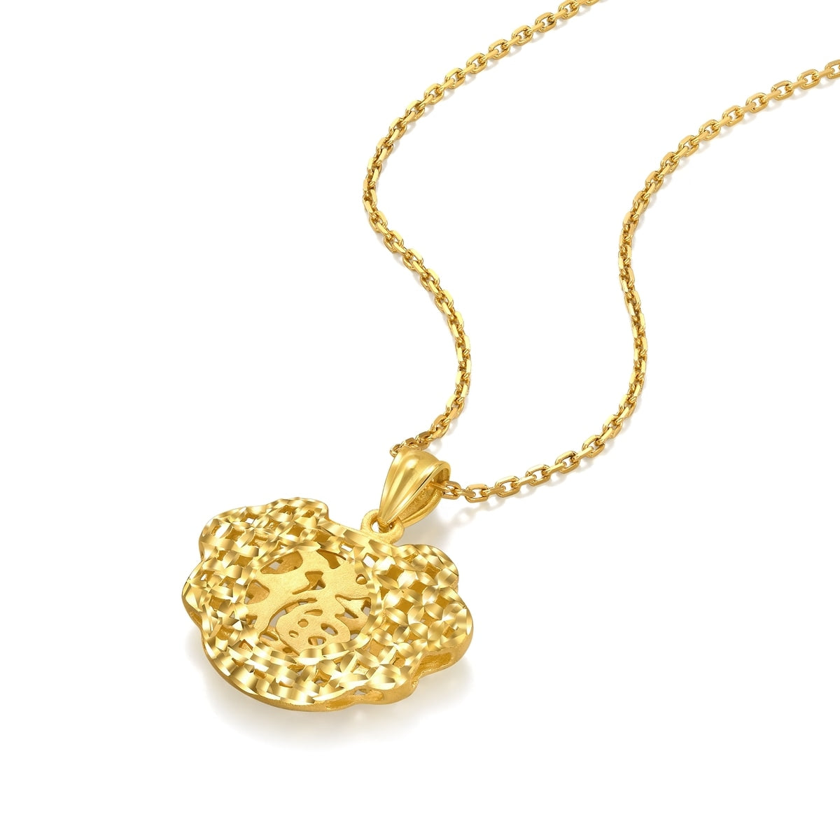 This 'New Born' 999.9 Gold Pendant by Chow Sang Sang is a meaningful piece representing new beginnings and blessings, with intricate engravings for good fortune and longevity. A perfect keepsake for special occasions.