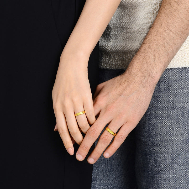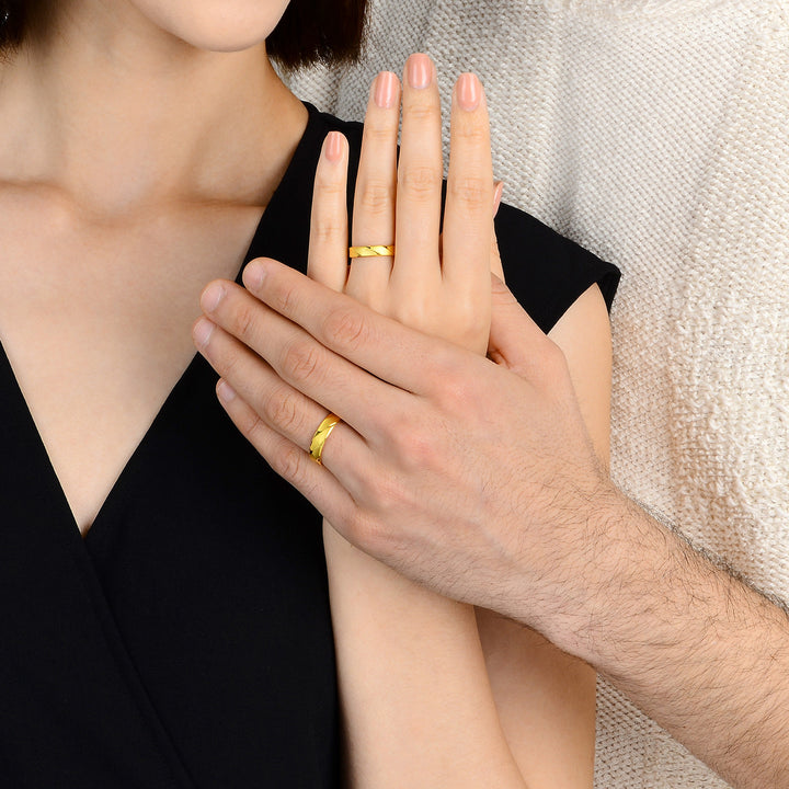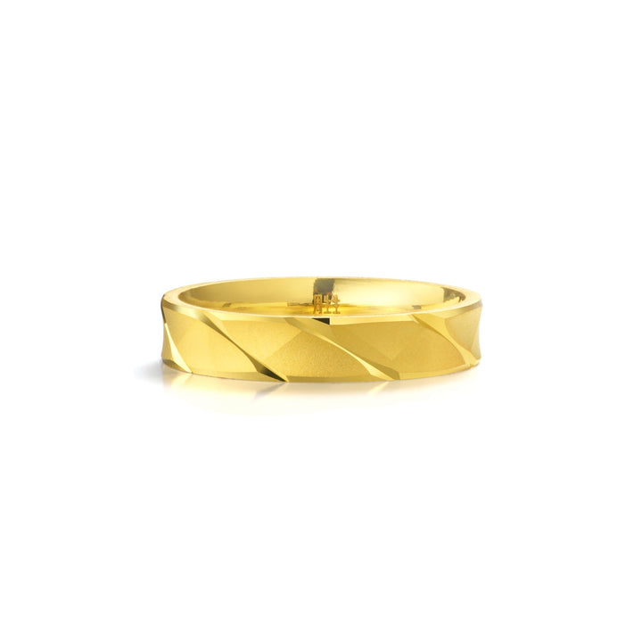 This 999.9 Gold Ring by Chow Sang Sang is inspired by Italian fabrication techniques, with intricately carved diagonal textures for both style and comfort. A luxurious and comfortable choice for everyday wear.