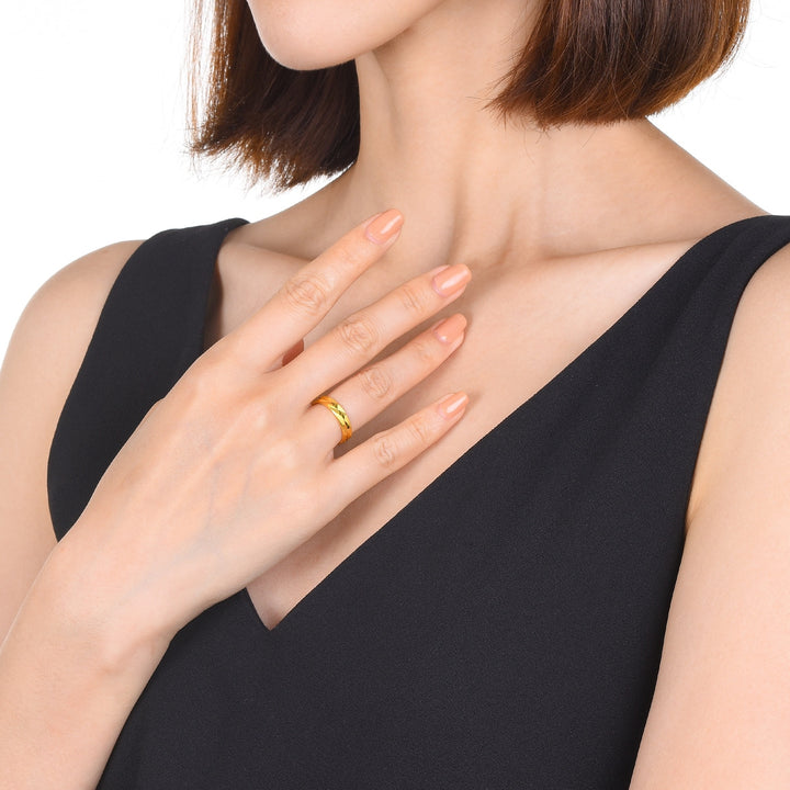 This 999.9 Gold Ring by Chow Sang Sang offers a slightly lighter version of the previous design with the same intricate craftsmanship, making it a versatile and elegant choice.