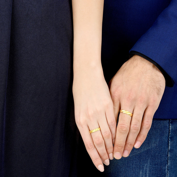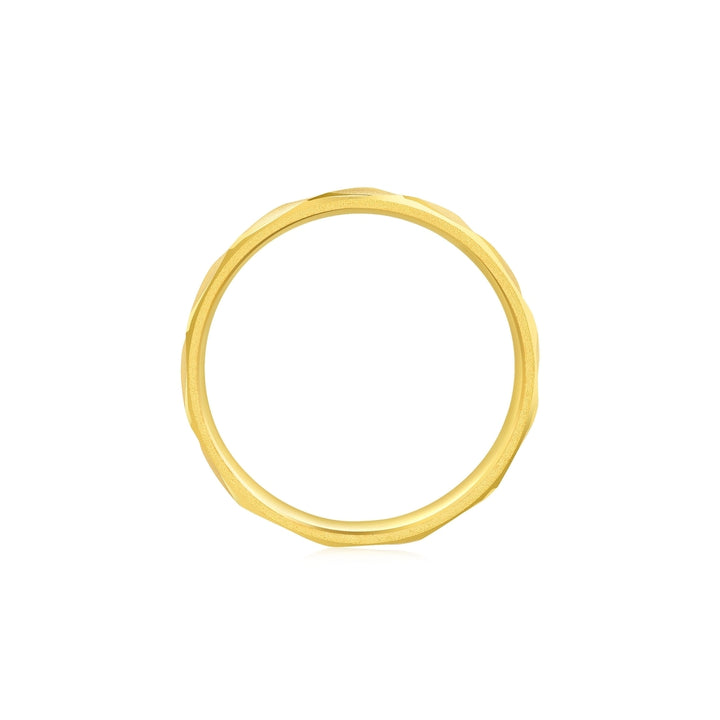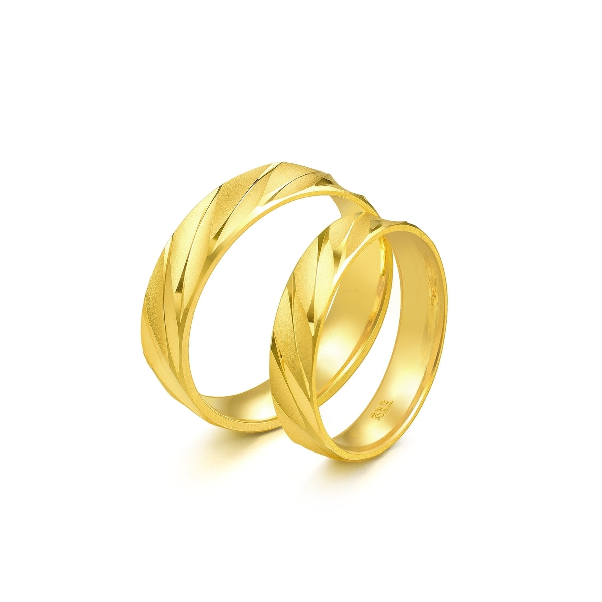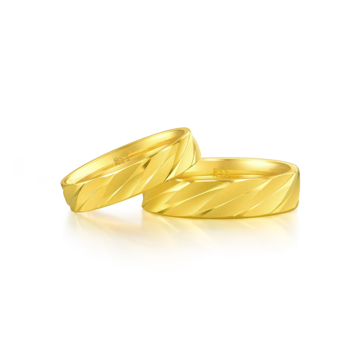 This 999.9 Gold Ring by Chow Sang Sang features diagonal carvings inspired by Italian style, providing a luxurious blend of comfort and elegance. The intricate detailing makes it perfect for both casual and formal occasions.