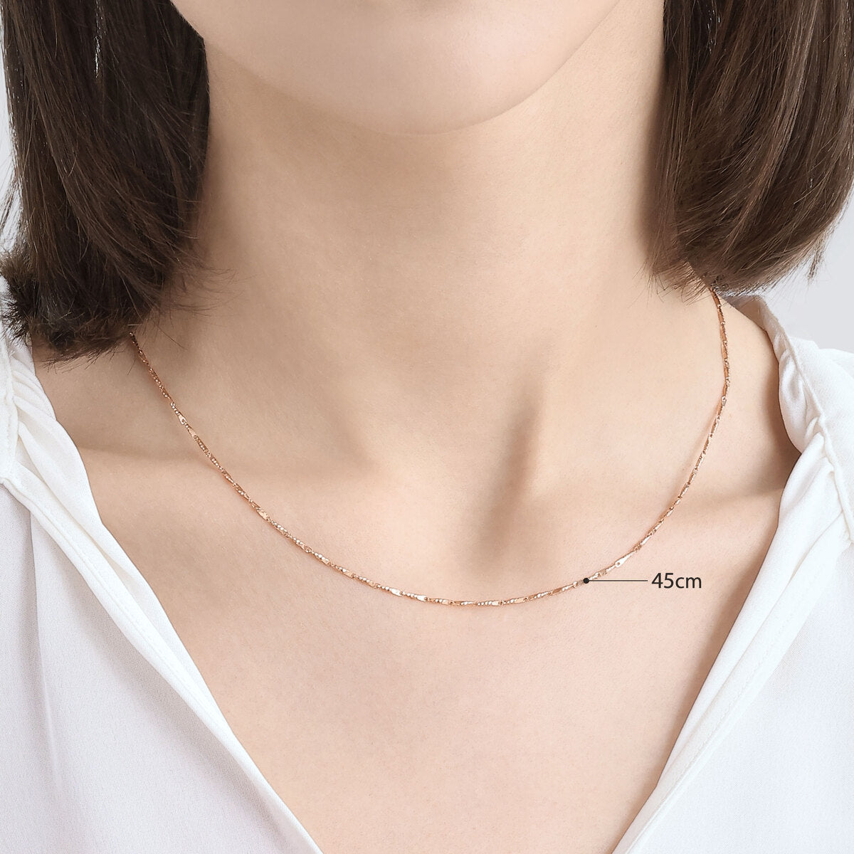 Handcrafted in 18K rose gold, weighing approximately 0.100 tael (~3.743g) and measuring 40cm in length.