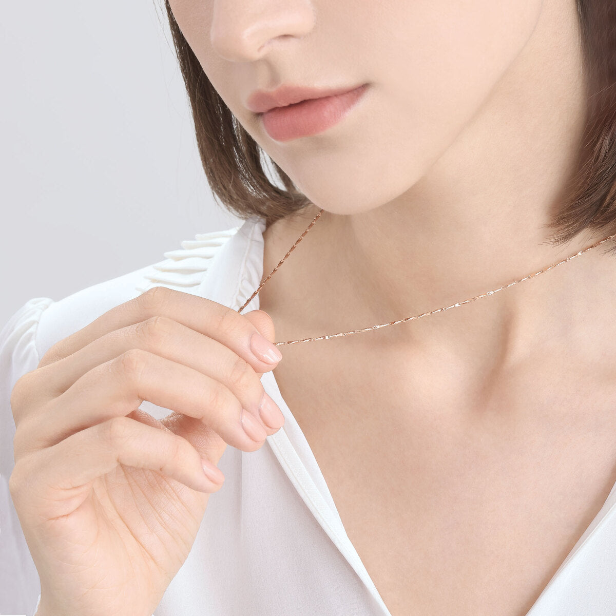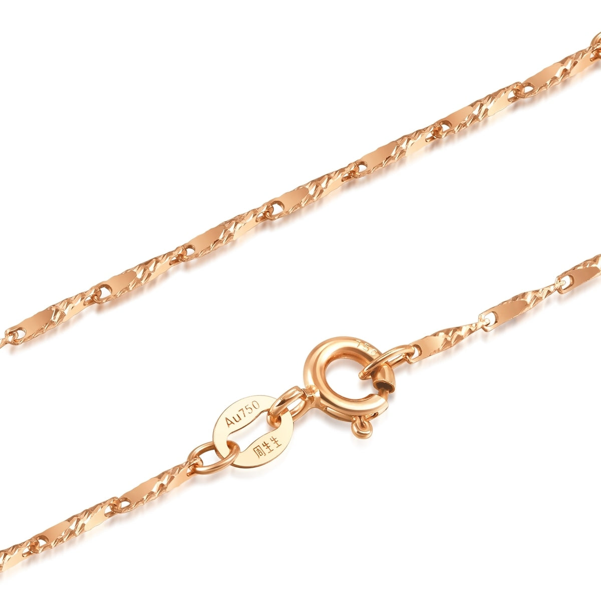 This 18K Rose Gold Necklace by Chow Sang Sang features a simple and versatile design, perfect for layering or wearing solo. Its warm rose gold tone adds a touch of elegance and complements any outfit.