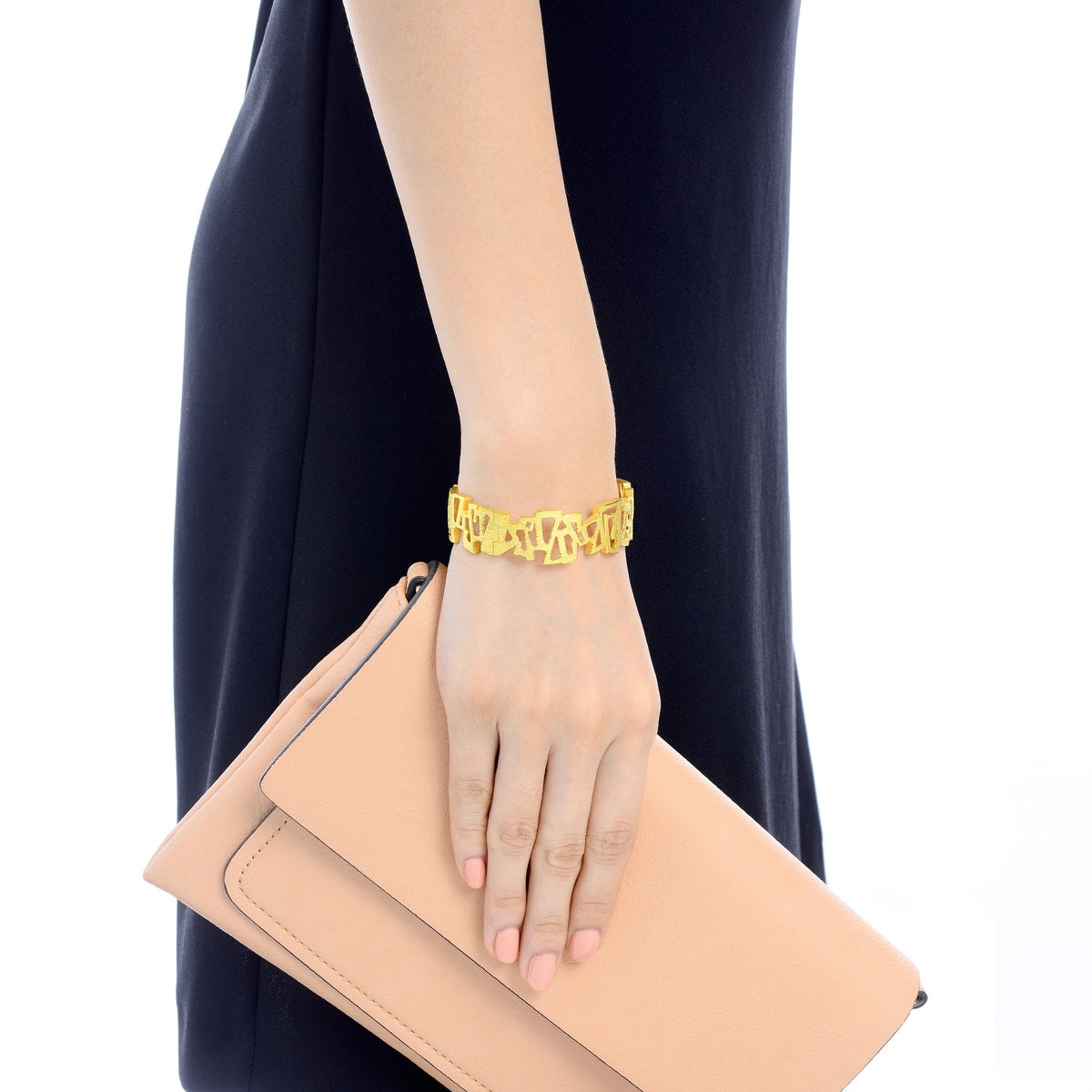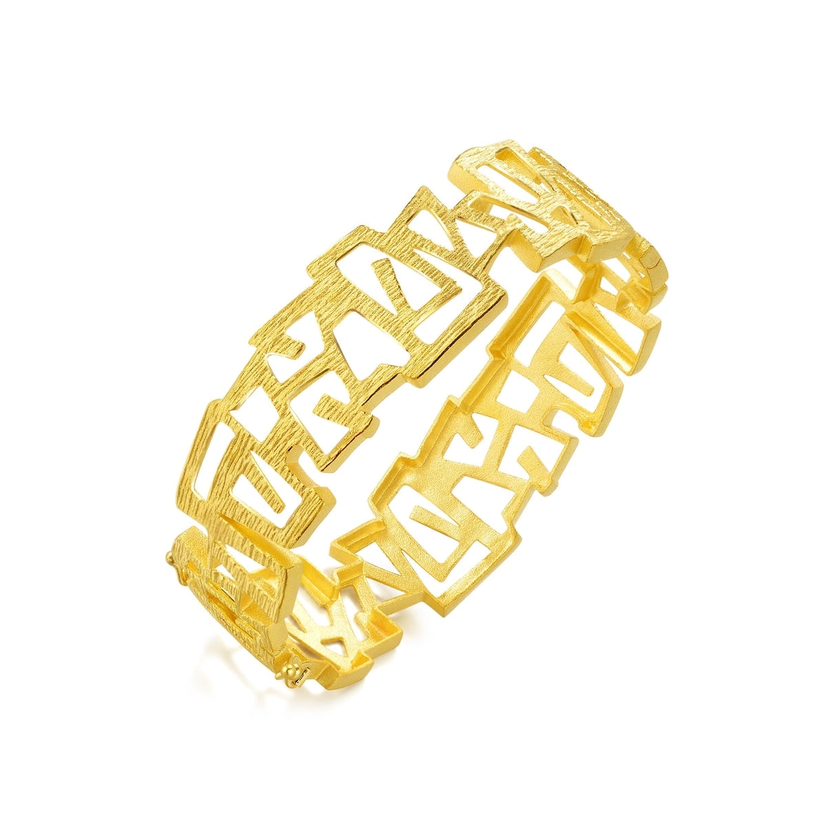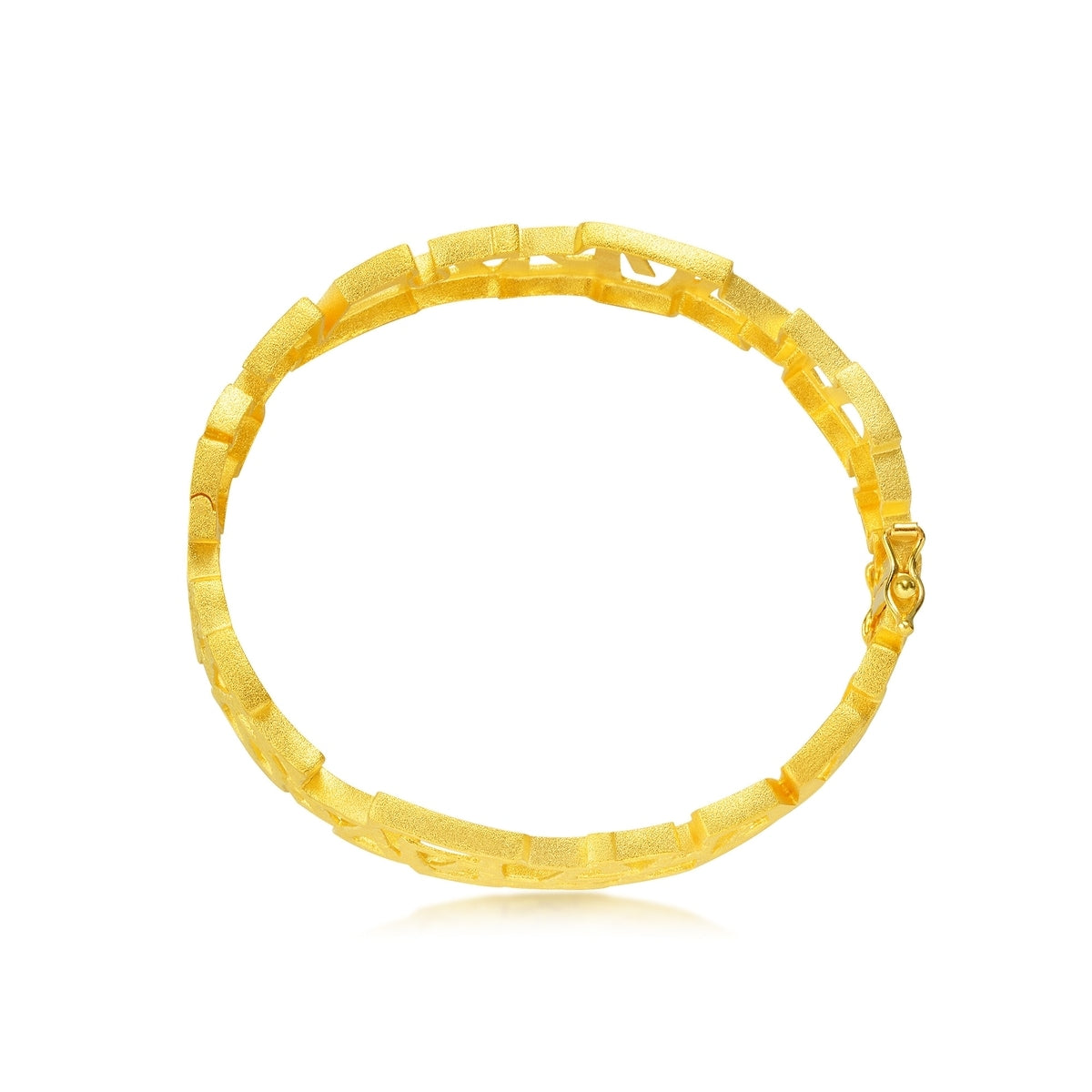 This 999.9 Gold Bangle by Chow Sang Sang reinvents traditional auspicious patterns into a contemporary style, offering a timeless piece full of glamour and elegance.