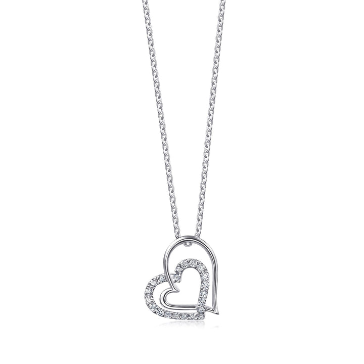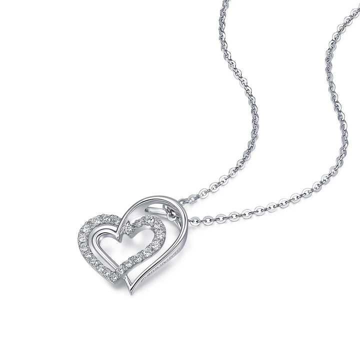 This 900 Platinum Diamond Pendant by Chow Sang Sang features a heart-shaped design accentuated with mini diamonds, representing deep and irretrievable feelings of love. Its sweet and delicate design makes it a perfect gift for a loved one.