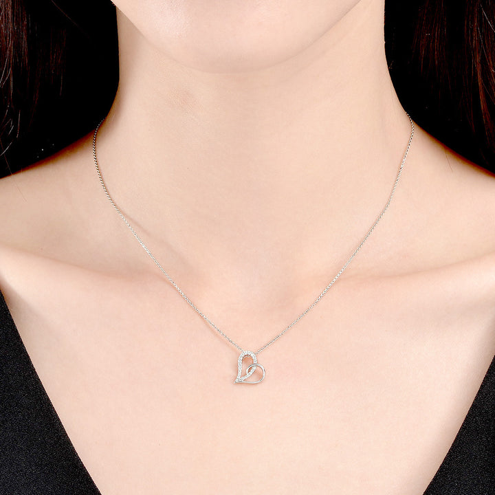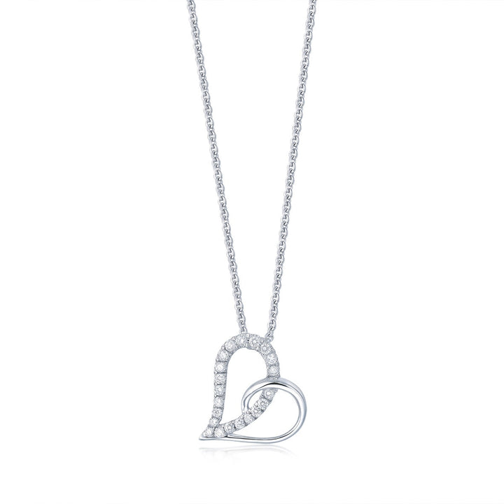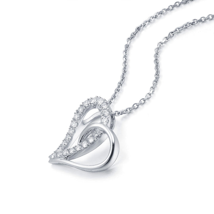 This 900 Platinum Diamond Pendant by Chow Sang Sang showcases a heart-shaped pendant with overlapping curves, symbolizing infinite love. Its clean elegance makes it a timeless piece for any occasion.