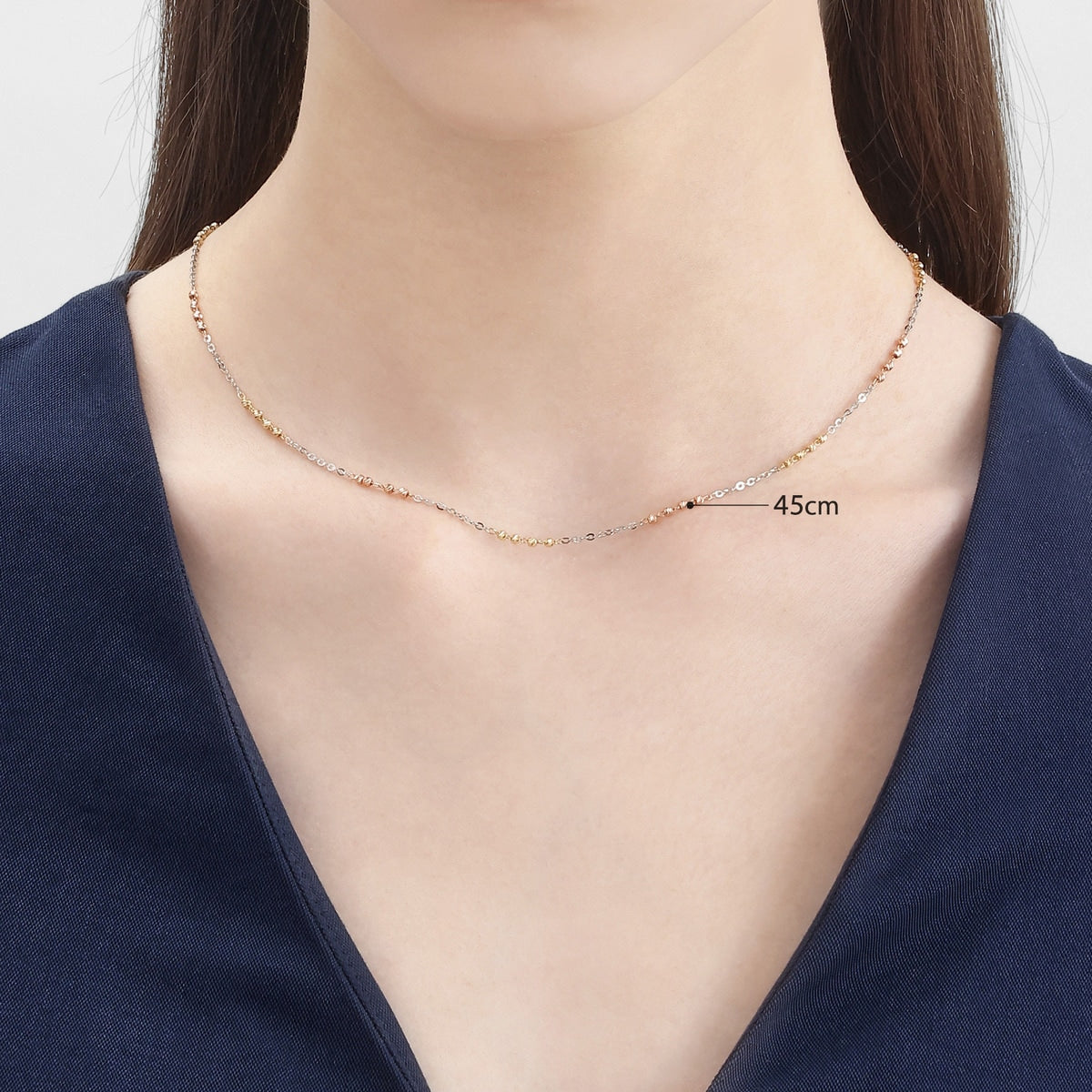 Handcrafted in 18K multi-colored gold, weighing approximately 0.069 tael (~2.583g), 40 cm in length.