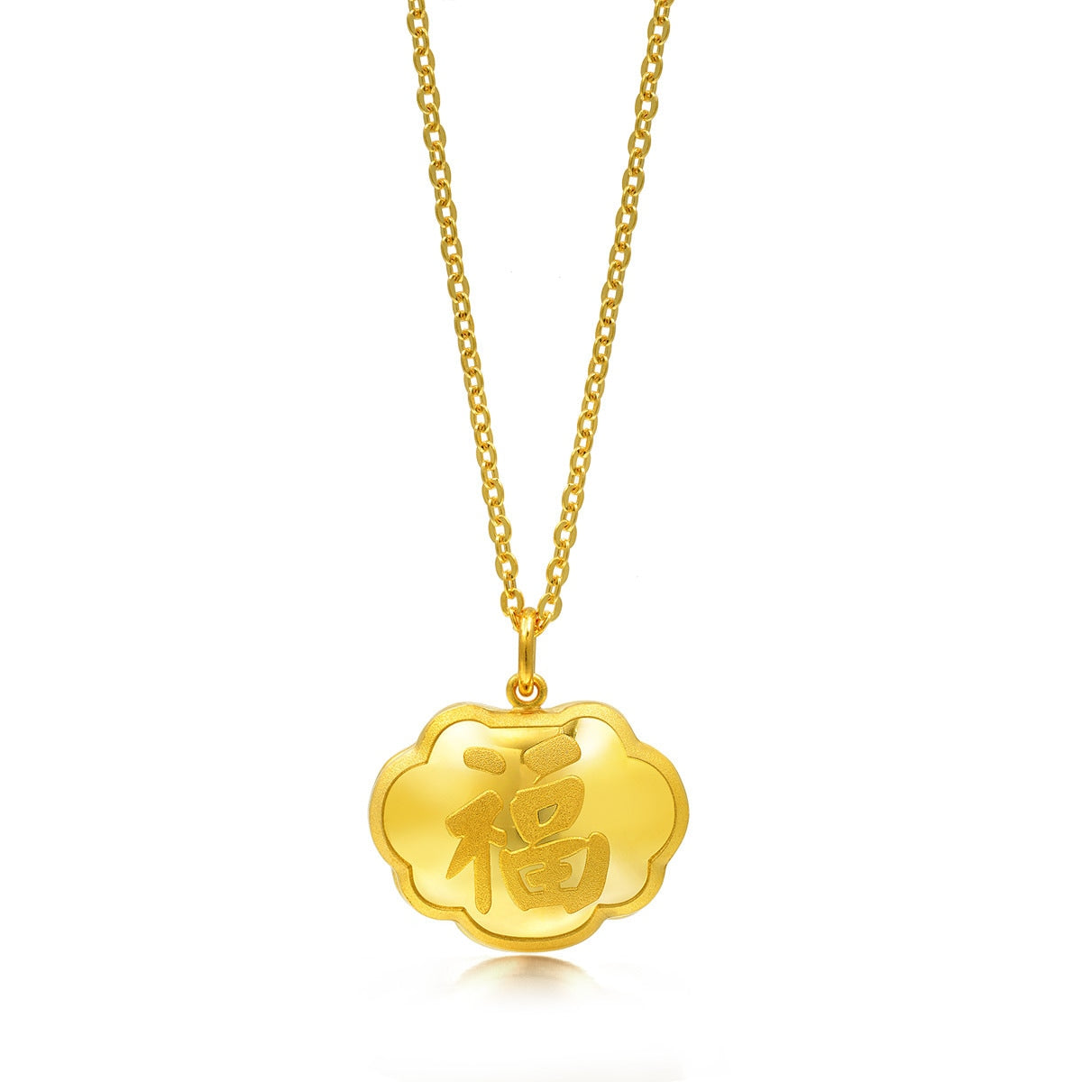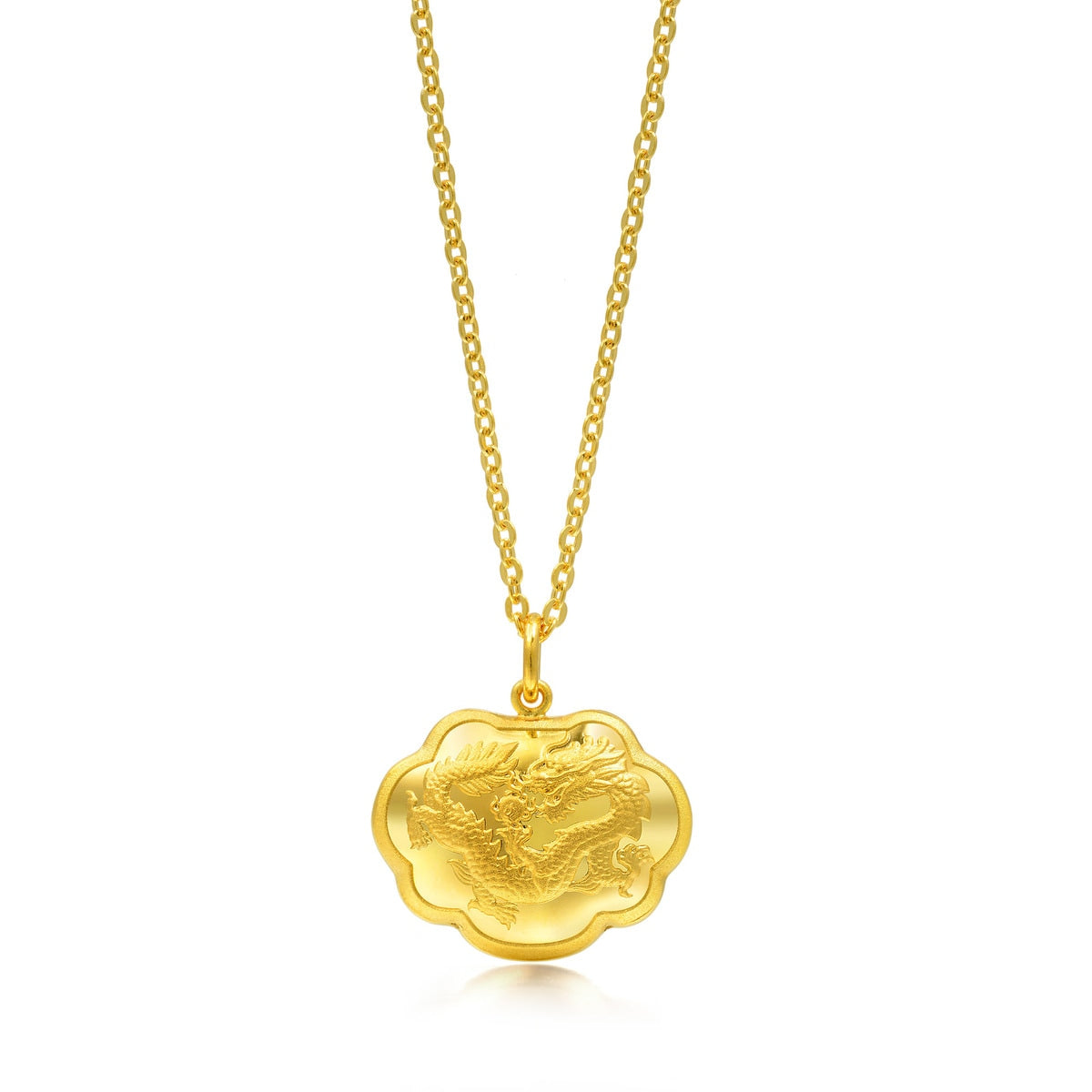 This 'New Born' 999.9 Gold Dragon Lock Pendant by Chow Sang Sang is a classic longevity lock engraved with a majestic dragon. This powerful symbol of protection and blessings makes it a meaningful piece to cherish.