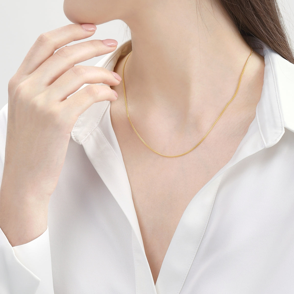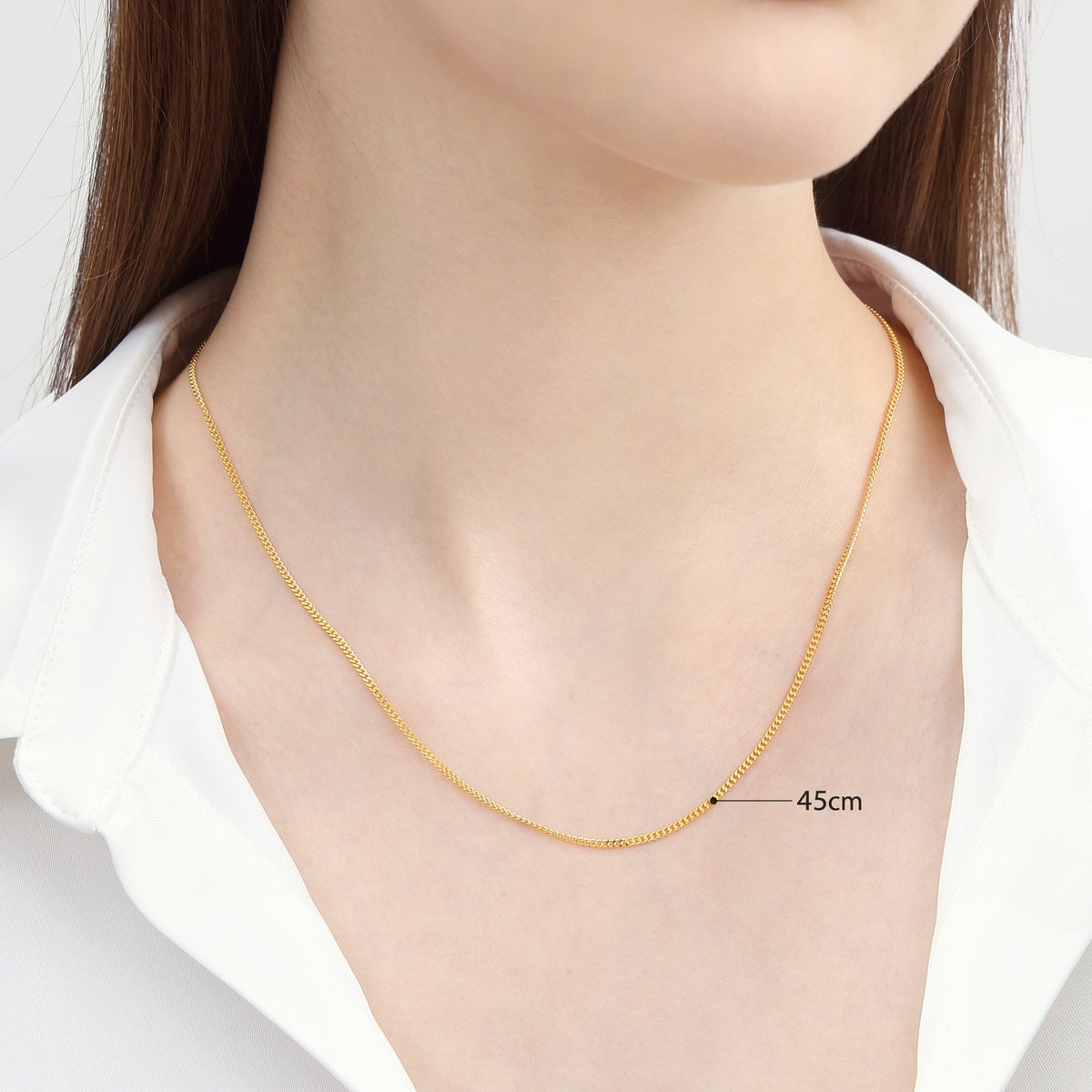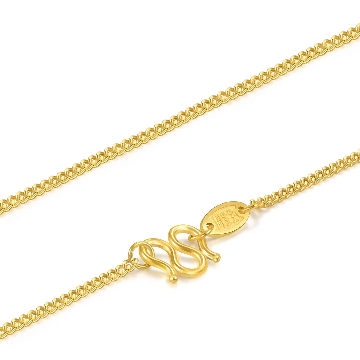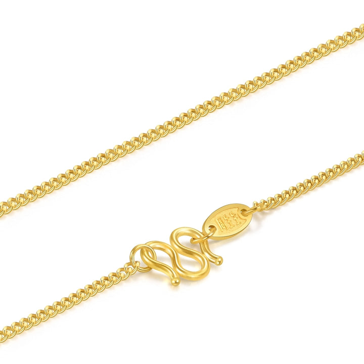 This 999.9 Gold Flat Curb Chain Necklace by Chow Sang Sang offers versatile styling options, either worn solo for a minimalist look or paired with a pendant for added flair. Its simple yet fashionable design makes it a must-have accessory.