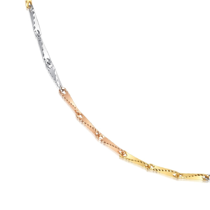 Handcrafted in 18K multi-coloured gold, weighing approximately 0.081 tael (~3.032g), 40 cm in length.