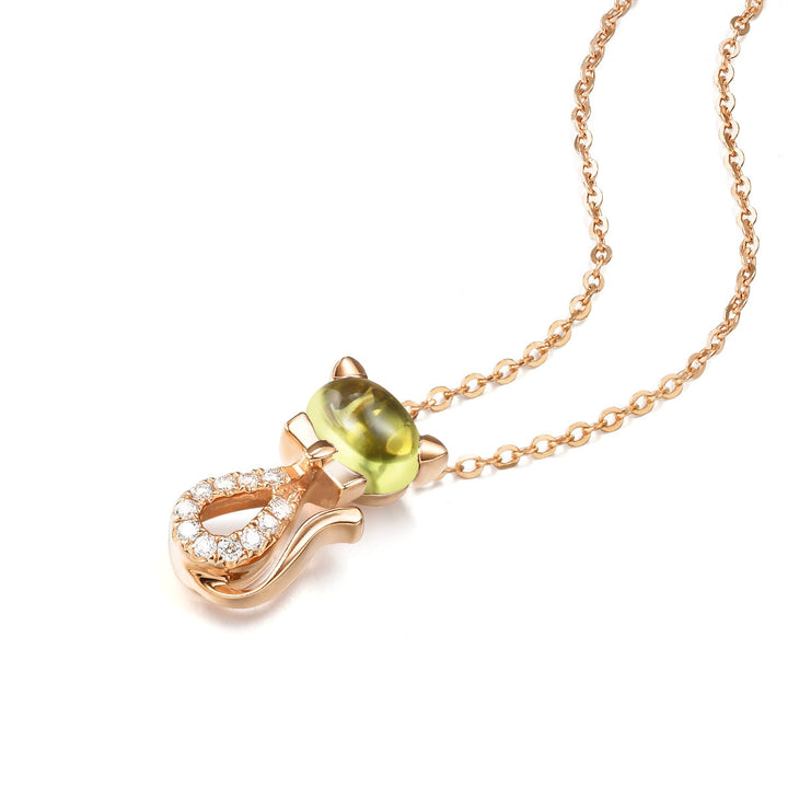 This 18K Rose Gold Peridot Necklace by Chow Sang Sang brings an exotic kitten pendant to life, decorated with a vibrant peridot gemstone. Part of a playful collection of animals, this necklace is perfect for adding a splash of color and fun to any look.