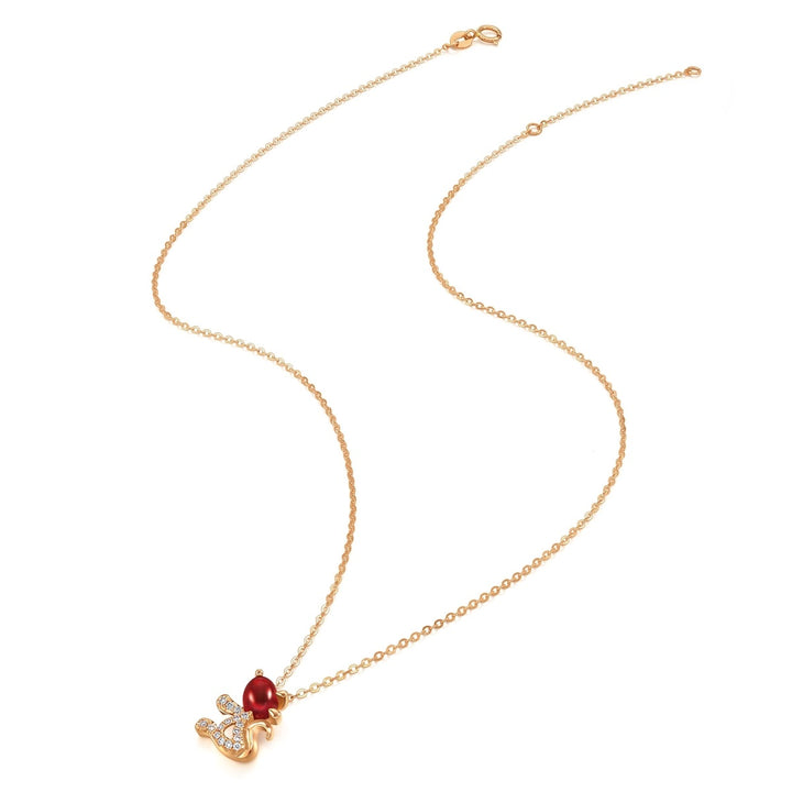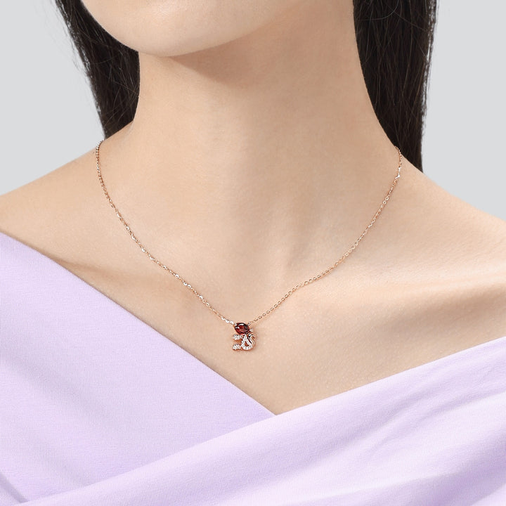 This 18K Rose Gold Almandite Necklace by Chow Sang Sang features a delicate squirrel pendant decorated with a vibrant almandite gemstone. Part of a whimsical collection, this piece adds playful color and charm to your everyday look.