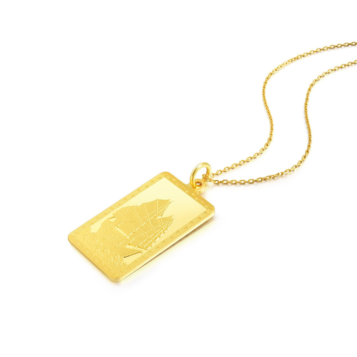This 999.9 Gold Pendant by Chow Sang Sang symbolizes smooth sailing and unhindered advancement in life. The gold plate pendant is a beautifully polished gift, bearing the message of 'everything going favorably' through the Chinese characters 「一帆風順」.