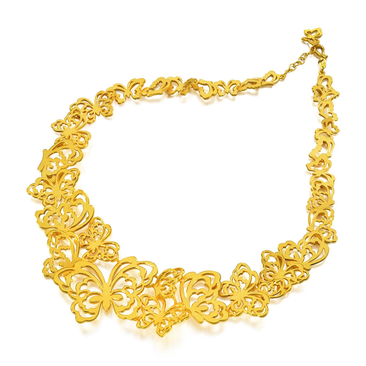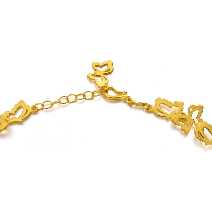 This 'Floral' 999.9 Gold Necklace by Chow Sang Sang is inspired by the delicate art of Chinese paper cutting, featuring beautifully carved butterfly motifs that reflect cultural elegance.