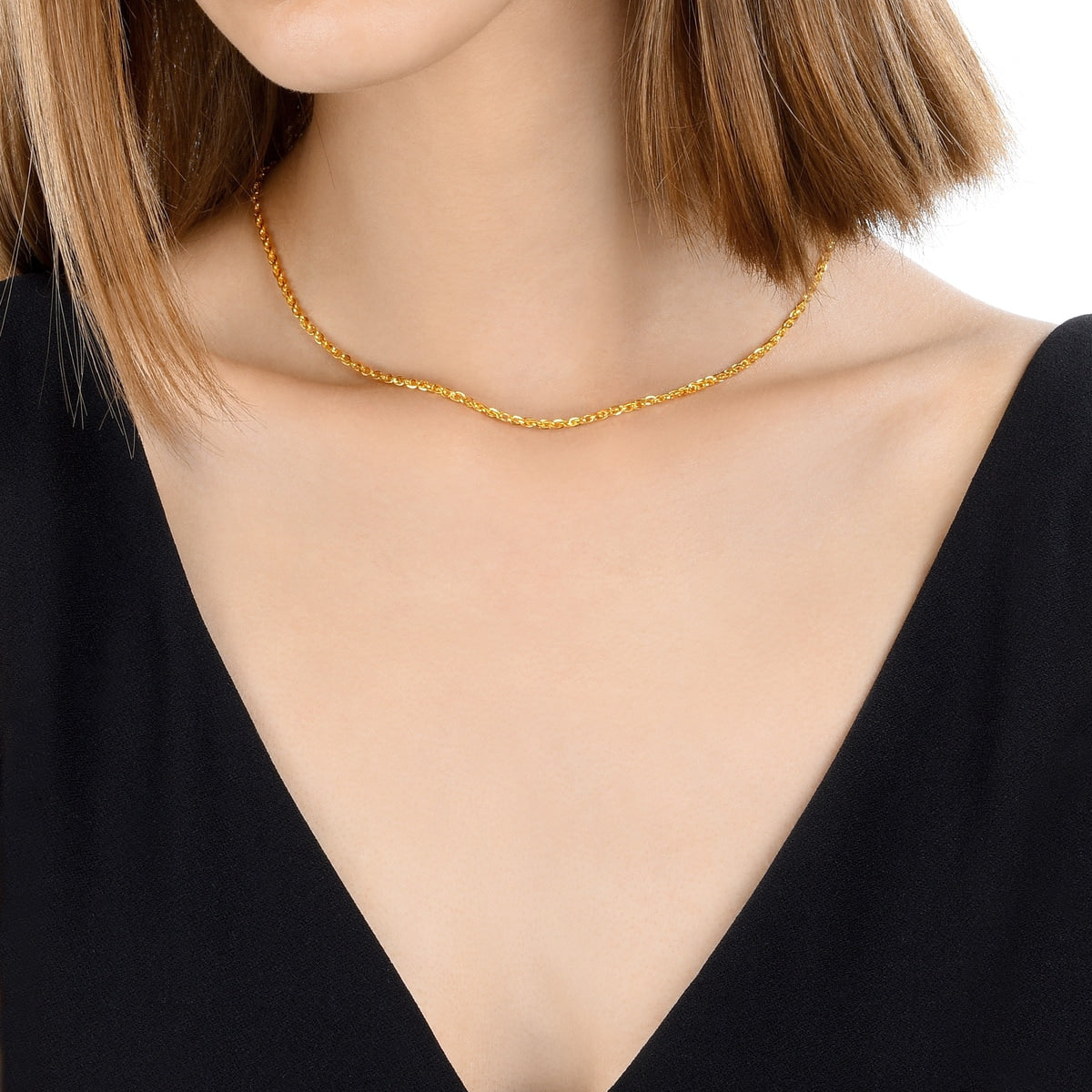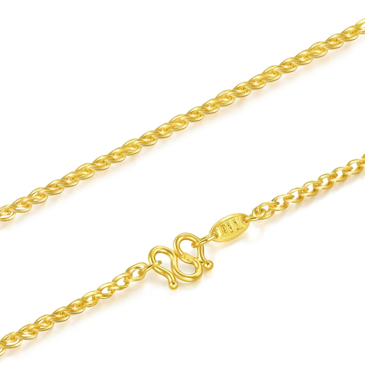 This 999.9 Gold Necklace by Chow Sang Sang features a versatile design that adds fashionable style whether worn solo or styled with an expressive pendant. A timeless and adaptable piece for any occasion.