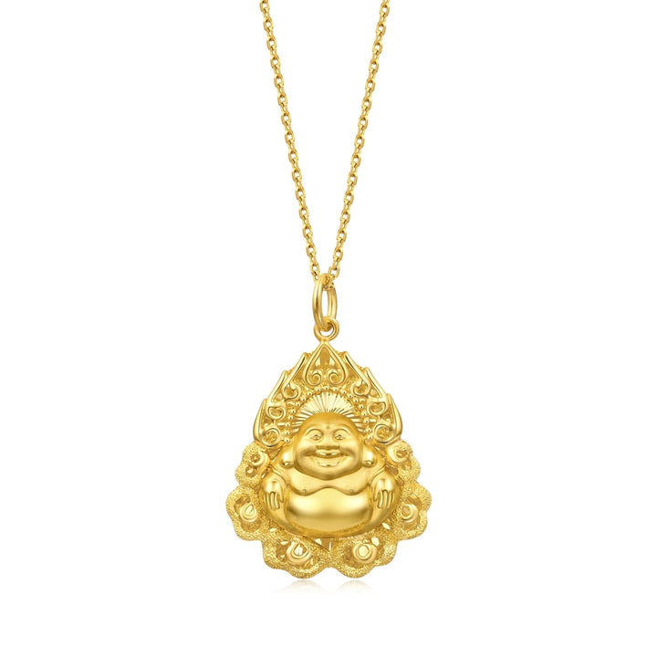 This 999.9 Gold Pendant by Chow Sang Sang offers a versatile and classic design, perfect for pairing with various outfits or pendants, showcasing timeless elegance.