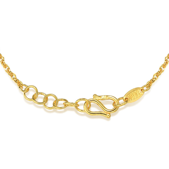 Handcrafted in 999.9 pure gold, weighing approximately 0.346 tael (~12.951g), 45 cm in length.