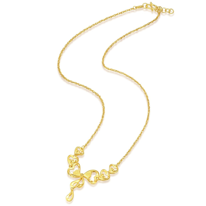 This 999.9 Gold Necklace by Chow Sang Sang features heart-shaped patterns of various sizes forming a bow, symbolizing a deep and inseparable love that will last forever.